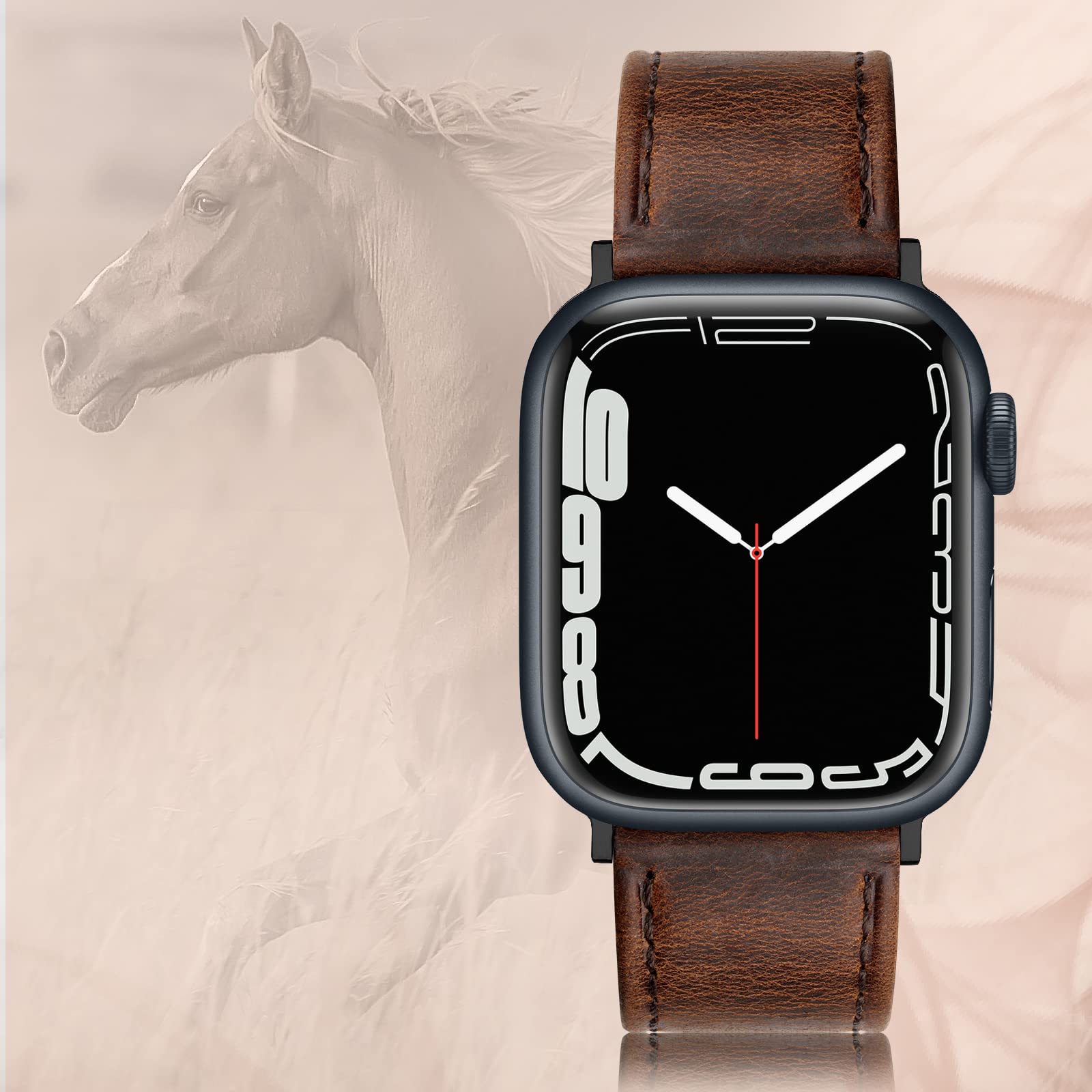 Quality: This leather band is compatible with Apple watch bands 42mm( series 1/ 2/ 3), iWatch 44mm (series 4/5/6), iWatch 45mm (series 7/8/9), iWatch 46mm (series 10) made of unique crazy horse vintage Grain Leather Wristbands with classic stainless steel buckle, Soft smooth touch feeling, very comfortable on your wrist. Note: The color may vary somewhat because of the natural variability of the leather, it is a normal appearance.