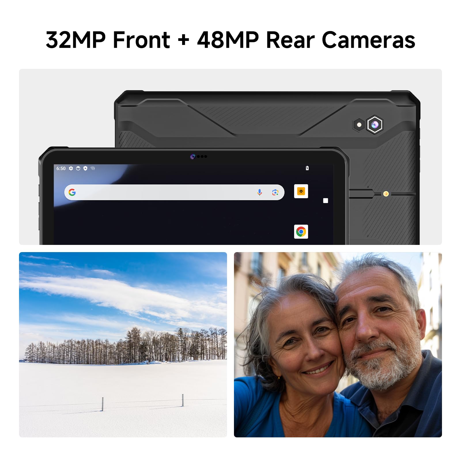 [ 10.95 inch Display & 48MP +32MP Cameras ] - The T1 Max has a 10.95 inch FHD screen with a resolution of 1920×1200 and a brightness of 320 Nits , which equips the rugged tablet with good brightness, high contrast, strong sense of hierarchy and vivid colors. It supports wet hands and glove operation, ideal for outdoor and industrial environments. Featuring a 48MP rear camera and a 32MP front camera to capture clear and detailed images and videos at any time