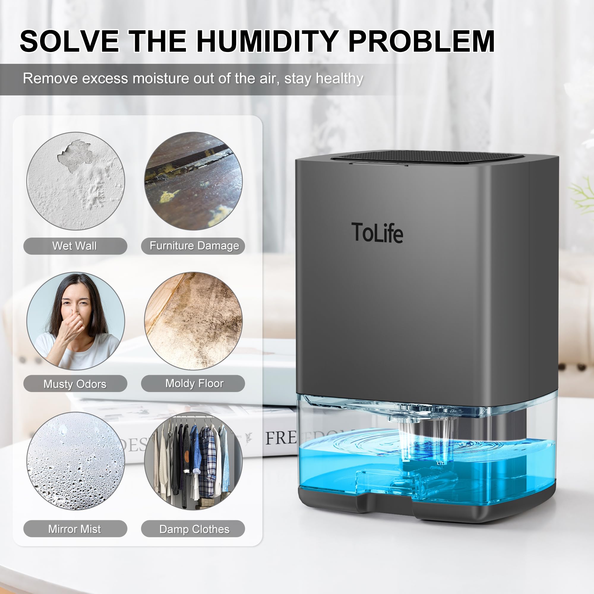 Advanced Dehumidifiers for Home: ToLife dehumidifiers use semiconductor condensation technology to quietly extract moisture, maintaining humidity levels below for a cozy living environment
