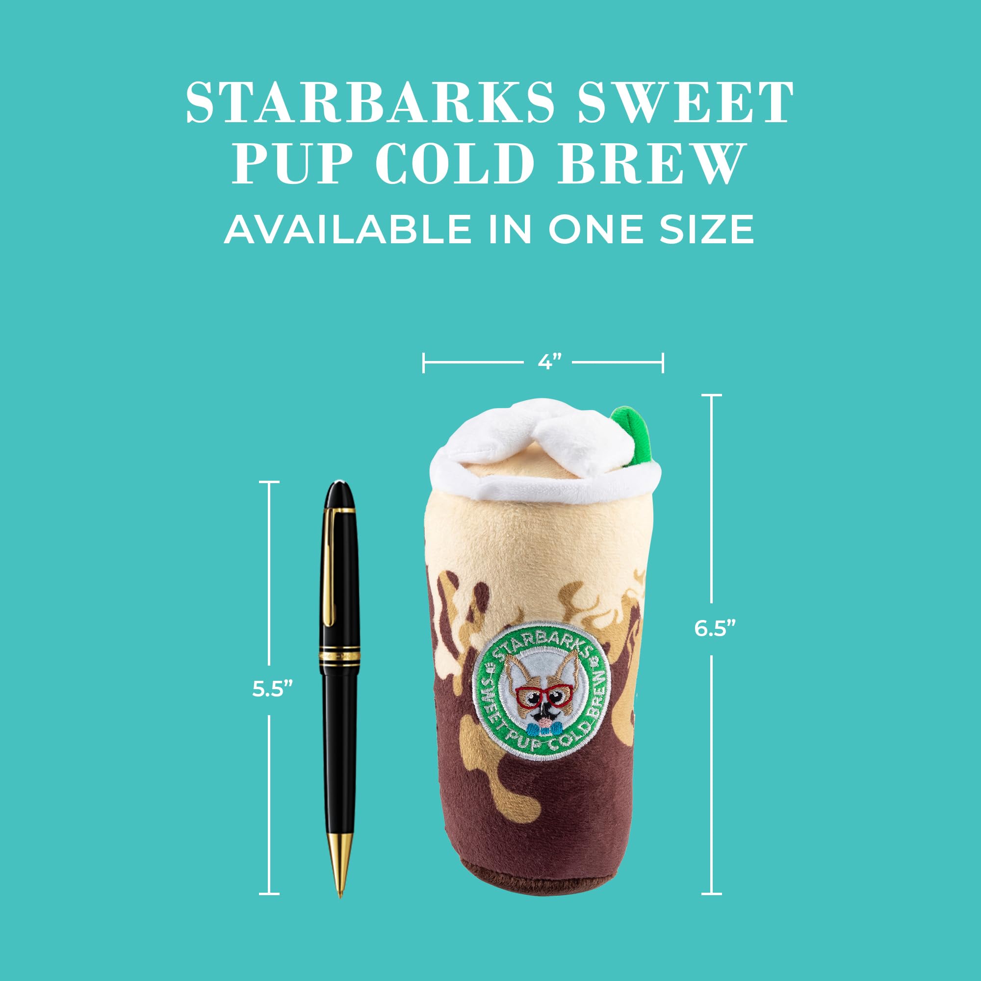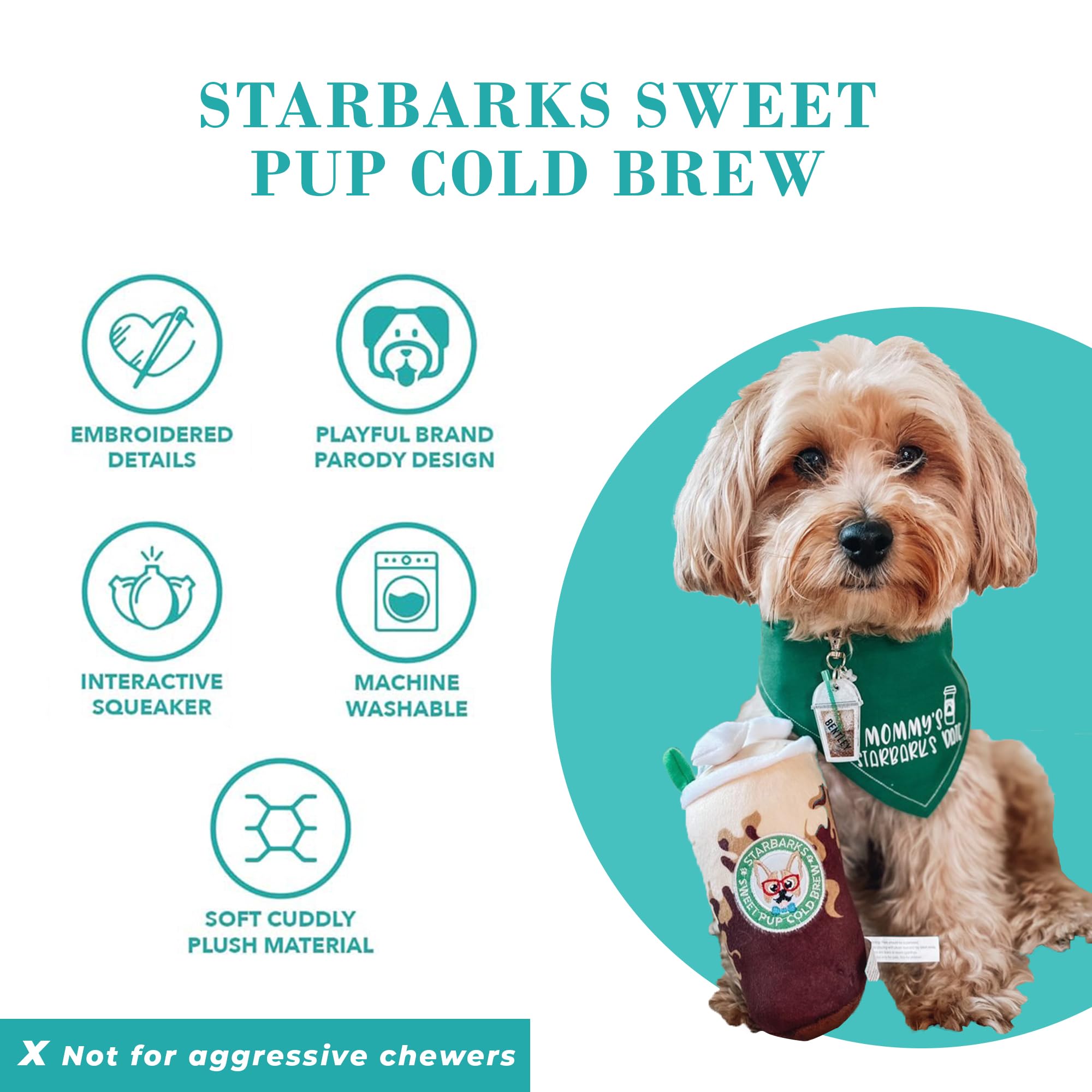 Funny Parody Plush Dog Toy: Perk up your pooch with our Starbarks Sweet Pup Cold Brew dog toy. This dog toy features a brown plush exterior with a built-in squeaker hidden inside. It’s a fun, cute interactive dog toy that will start any morning off right! One Size 6.5"x4"x5".