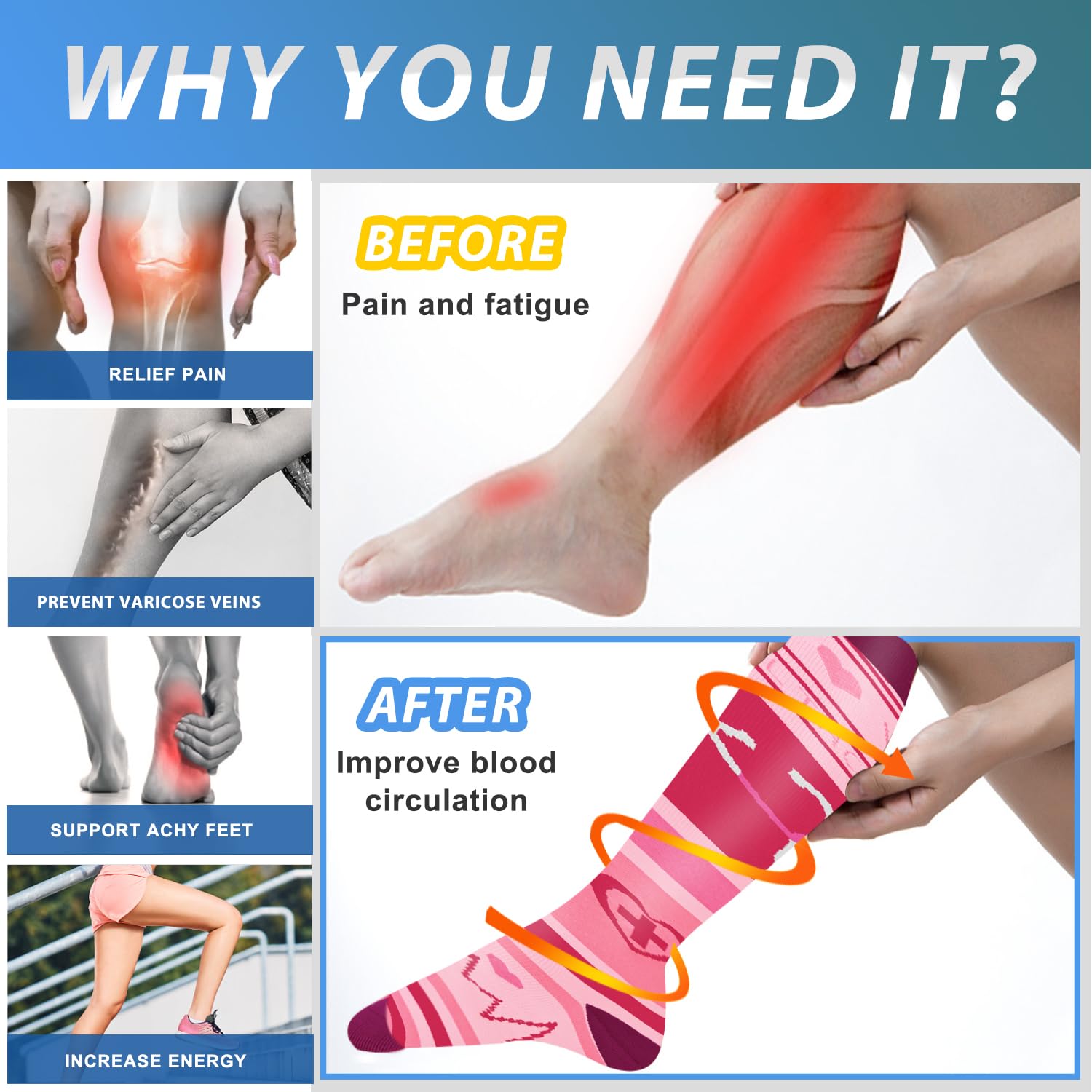 🆕 IDEAL FOR VARIOUS LIFESTYLES -- Perfect for runners, basketball players, gym enthusiasts, hikers, tennis players, cyclists, office workers, travelers, and anyone who spends extended periods on their feet. Our compression socks deliver the support and comfort you need to stay active and energized.
