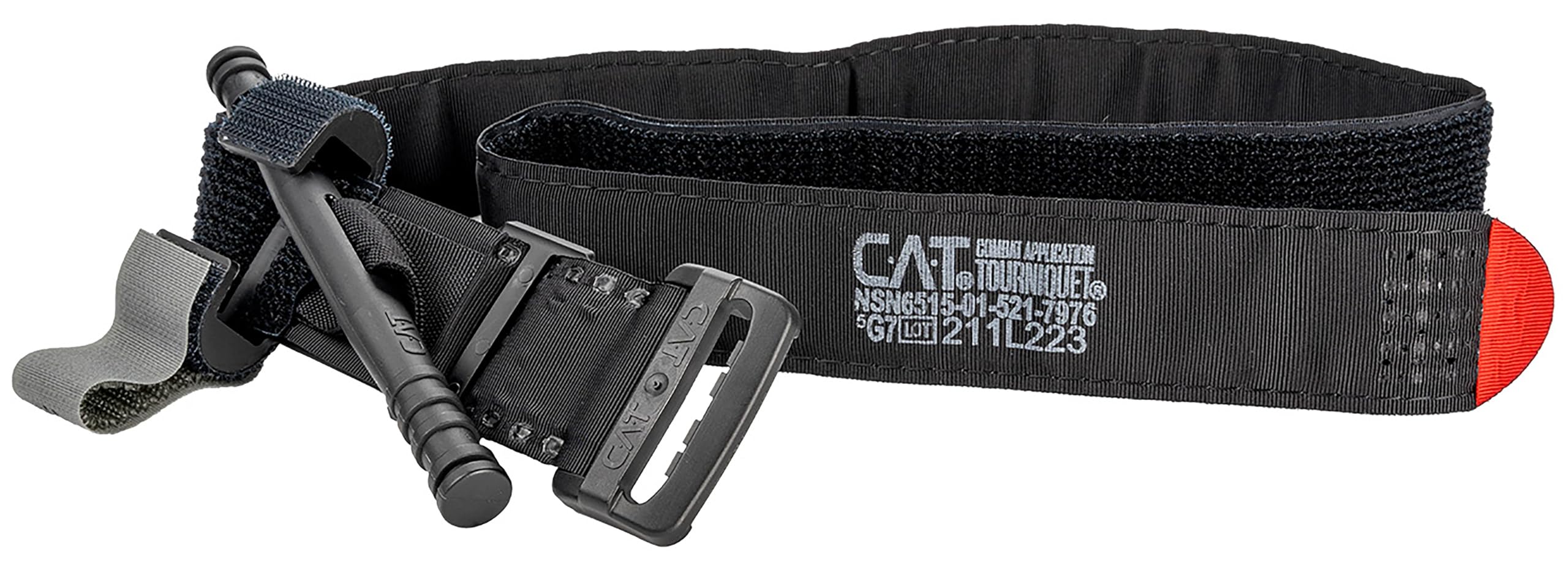 The fastest, safest, most effective prehospital tourniquet! Exceeds the new ANSI/ISEA Z308.1-2021 Standard for tourniquets. Noted as the best prehospital tourniquet in the February 2008 supplement of The Journal of Trauma The patented C-A-T is a true one-handed tourniquet proven to be 100% effective by the U.S. Army’s Institute of Surgical Research. Tests proved that the CAT completely occluded blood flow of an extremity in the event of a traumatic wound with significant hemorrhage. The Gen 7 CAT utilizes a durable windlass system with a patented free-moving internal band providing true circumferential pressure to the extremity. Once adequately tightened, bleeding will cease and the windlass is locked into place. A hook and loop windlass retention strap is then applied, securing the windlass to maintain pressure during casualty evacuation. The patented Combat Application Tourniquet (C-A-T) featuring the proprietary red tip design and the mechanical advantage of a band within a band has been the Official Tourniquet of the U.S. Army since 2005. The innovations in the CAT are protected by U.S. Patent Nos. 7,842,067 and 7,892,253.