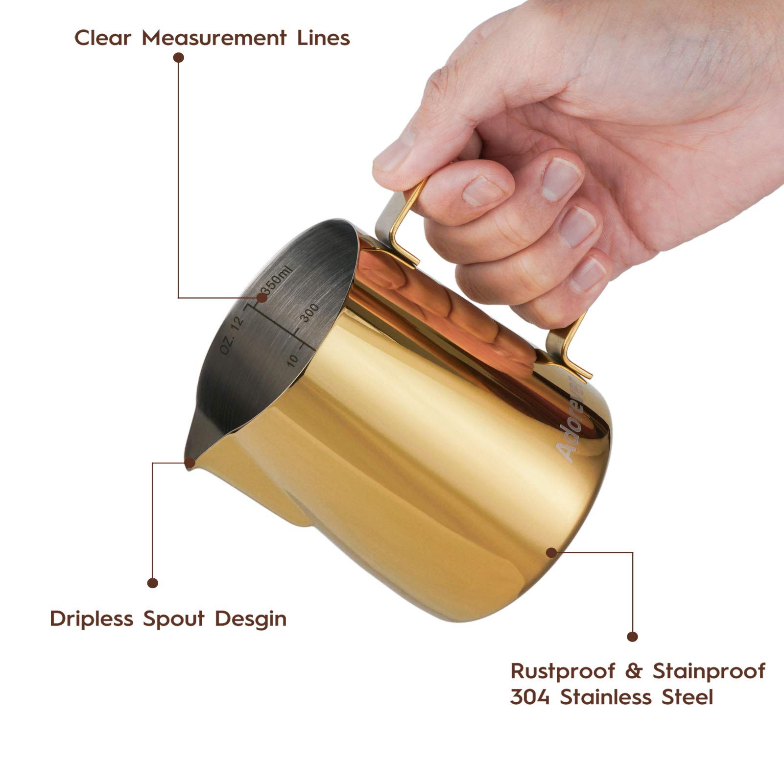 Various Colors For Choose: We have stainless steel/ black/ rainbow/ gold/ rose gold/ blue colors for choose. In Adorever, we can meet your different demands of frothing pitcher.