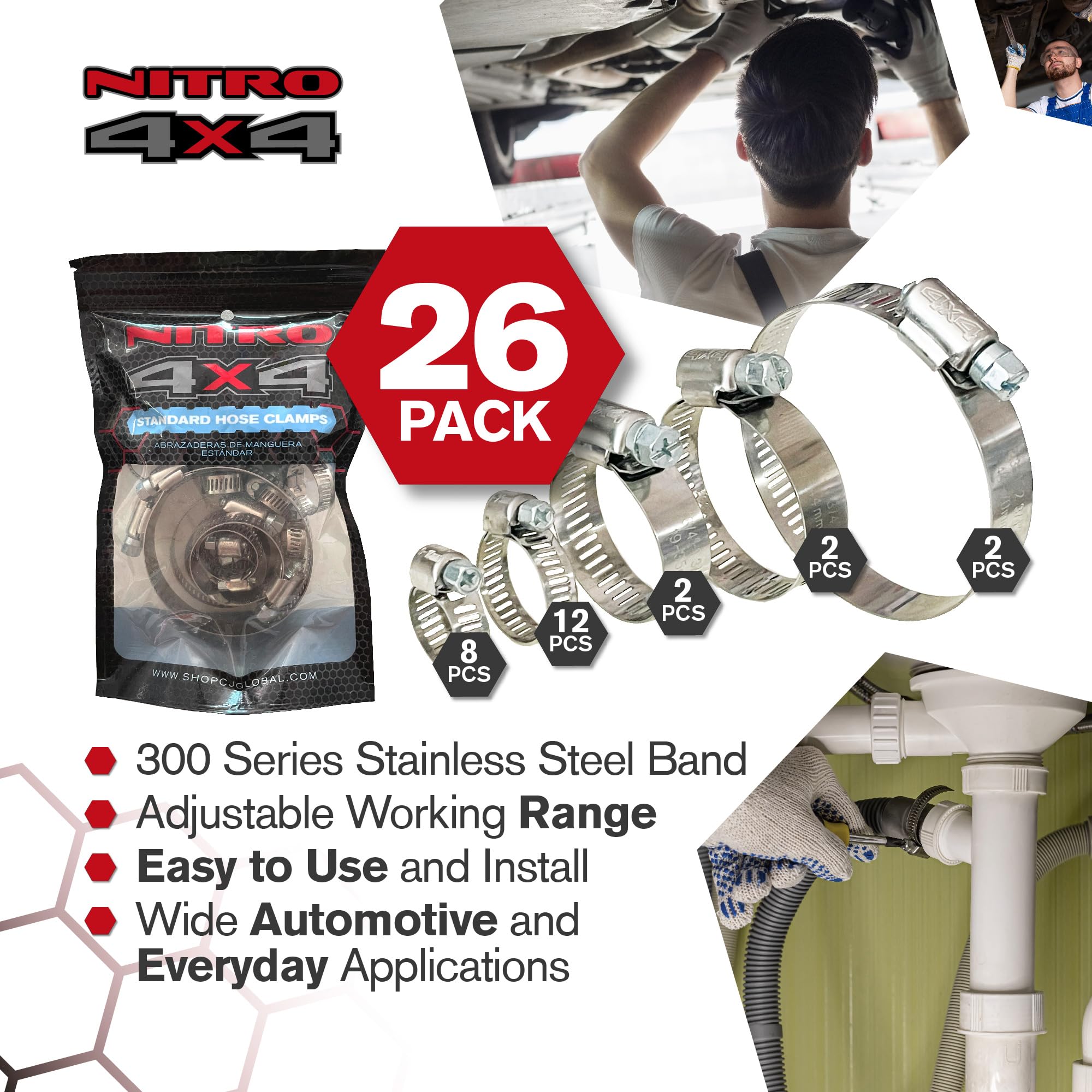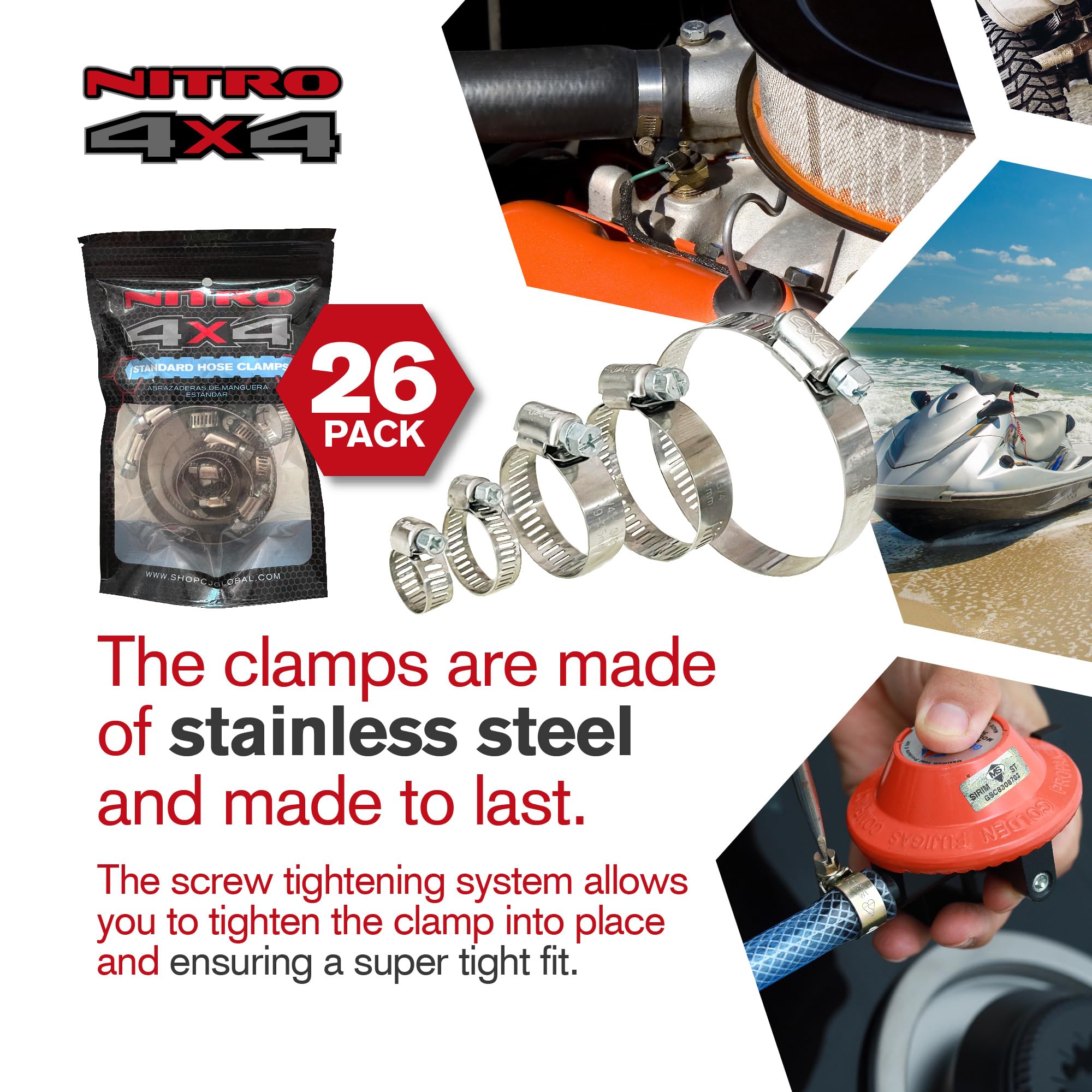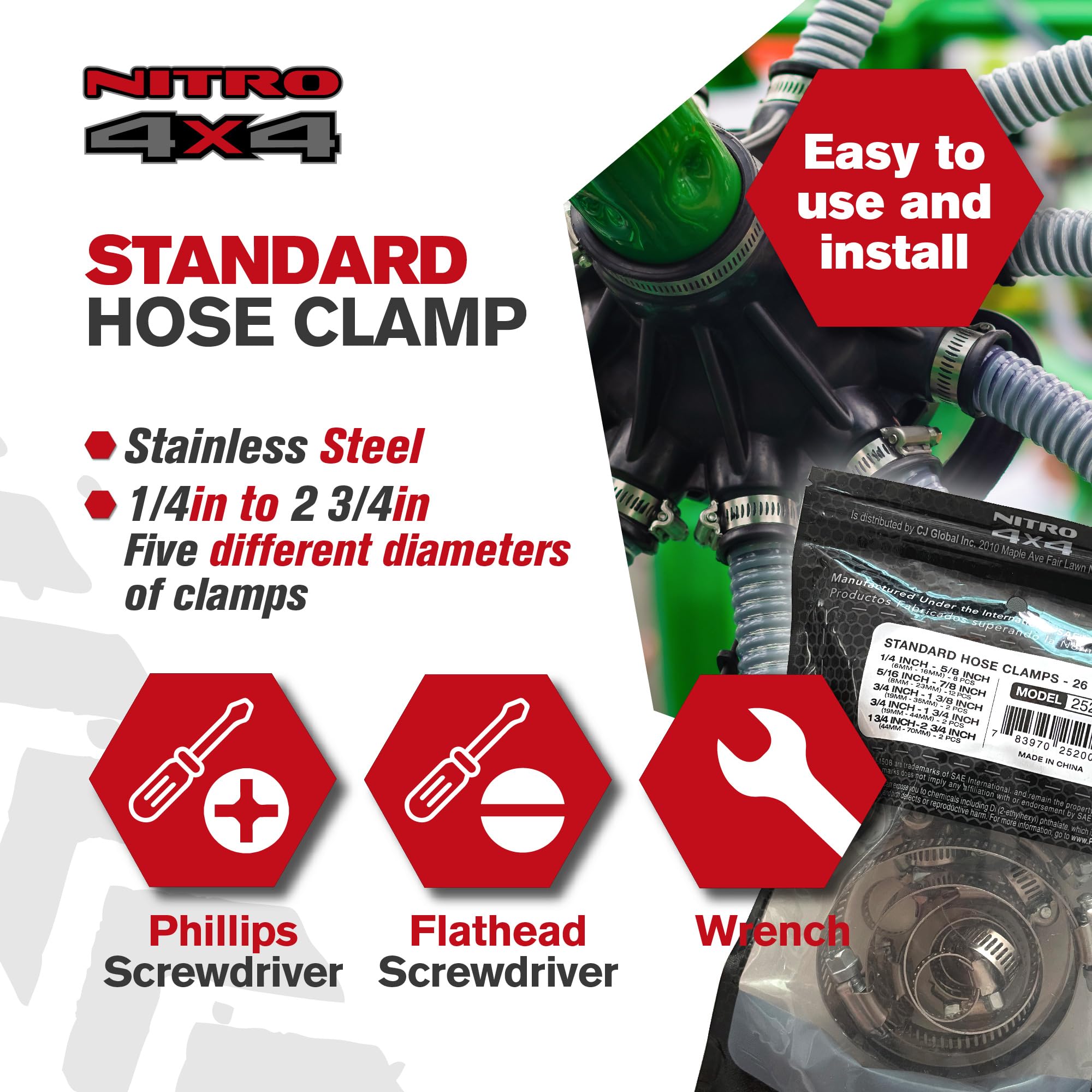 Multi-Purpose Stainless Steel Hose Clamps: Whether for automotive repairs, fuel lines, plumbing projects or mechanical applications, these stainless steel hose clamps deliver exceptional performance. A must-have for professionals and DIY enthusiasts alike.