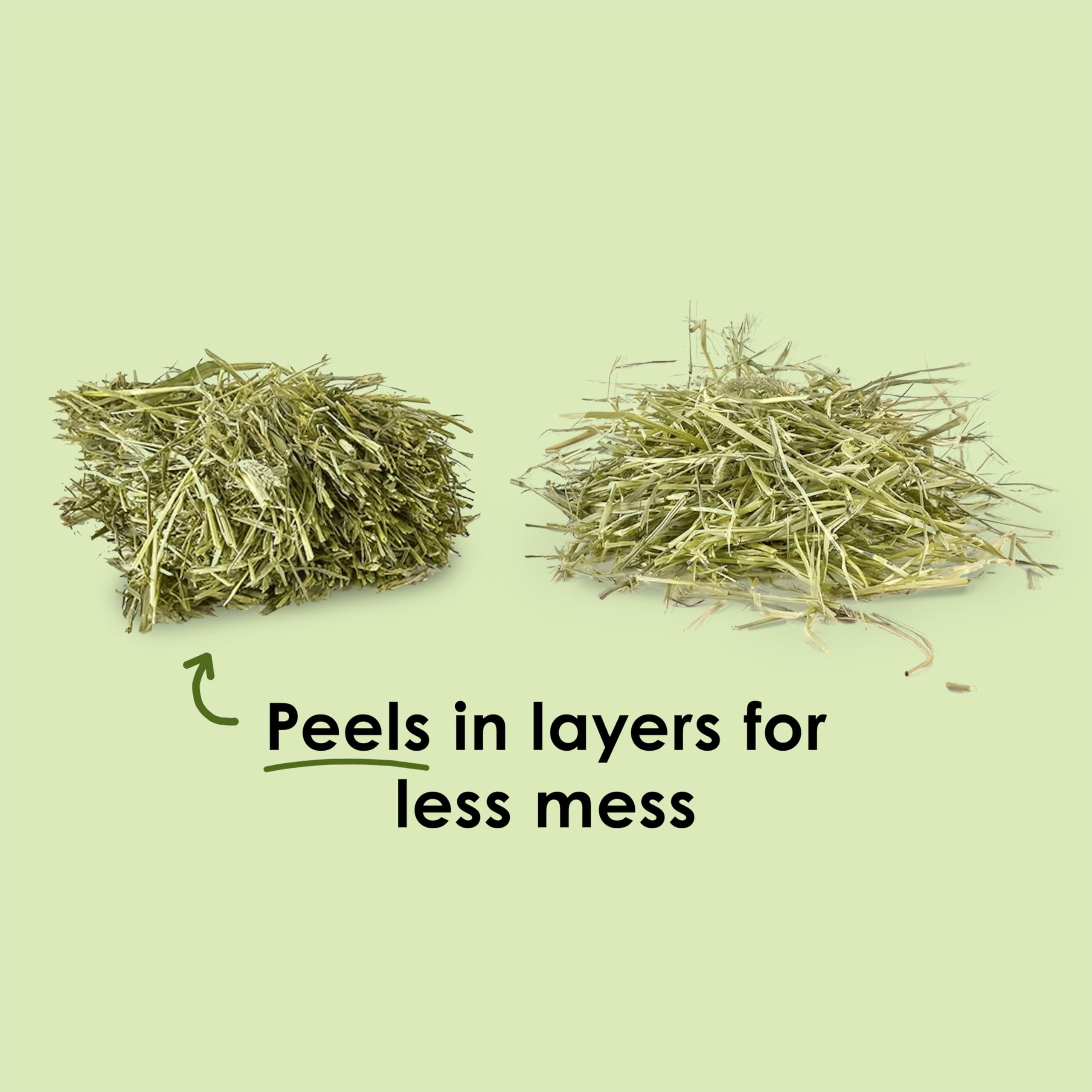 PEELS OFF IN LAYERS Wafer Cut Timothy Hay reduces mess and makes feeding easier