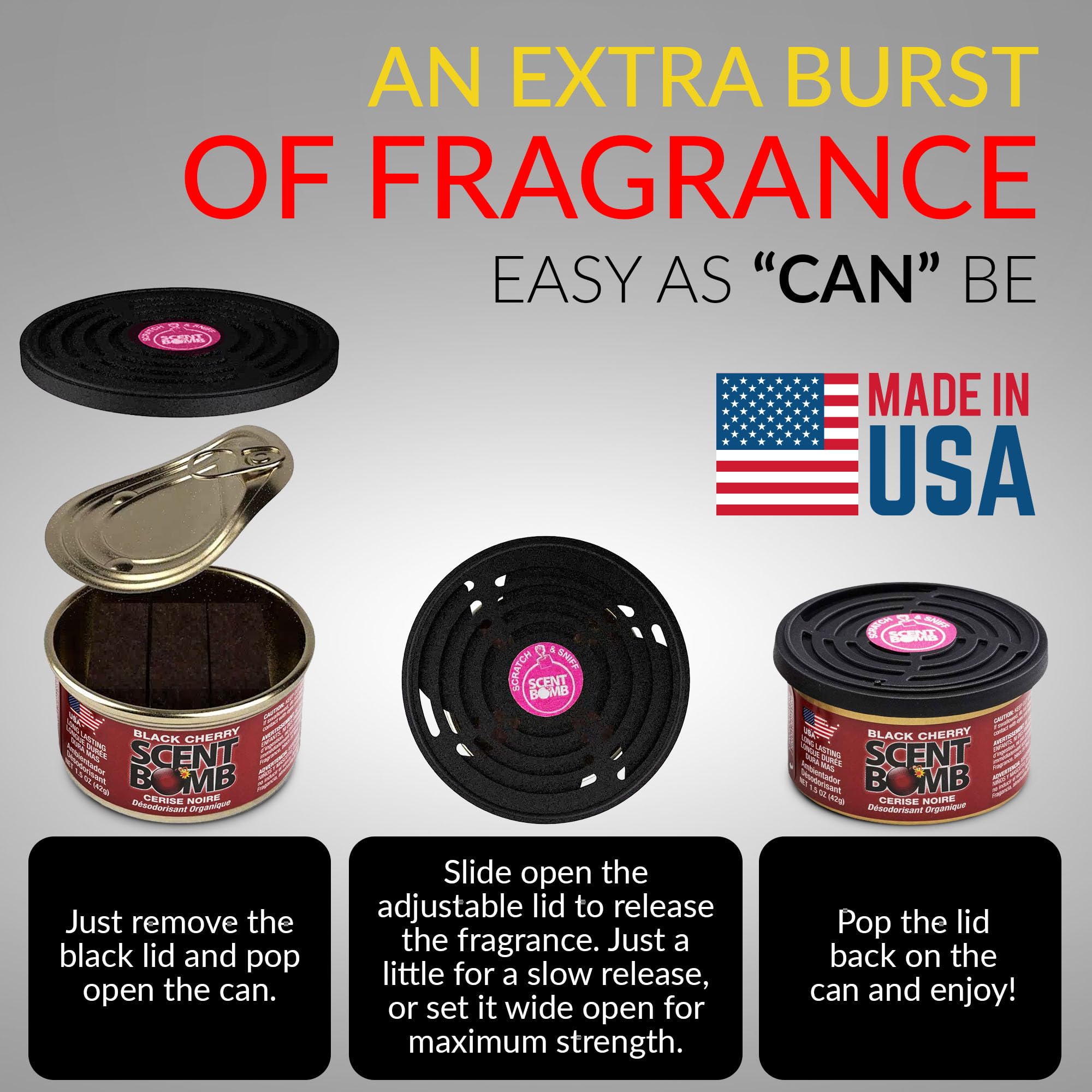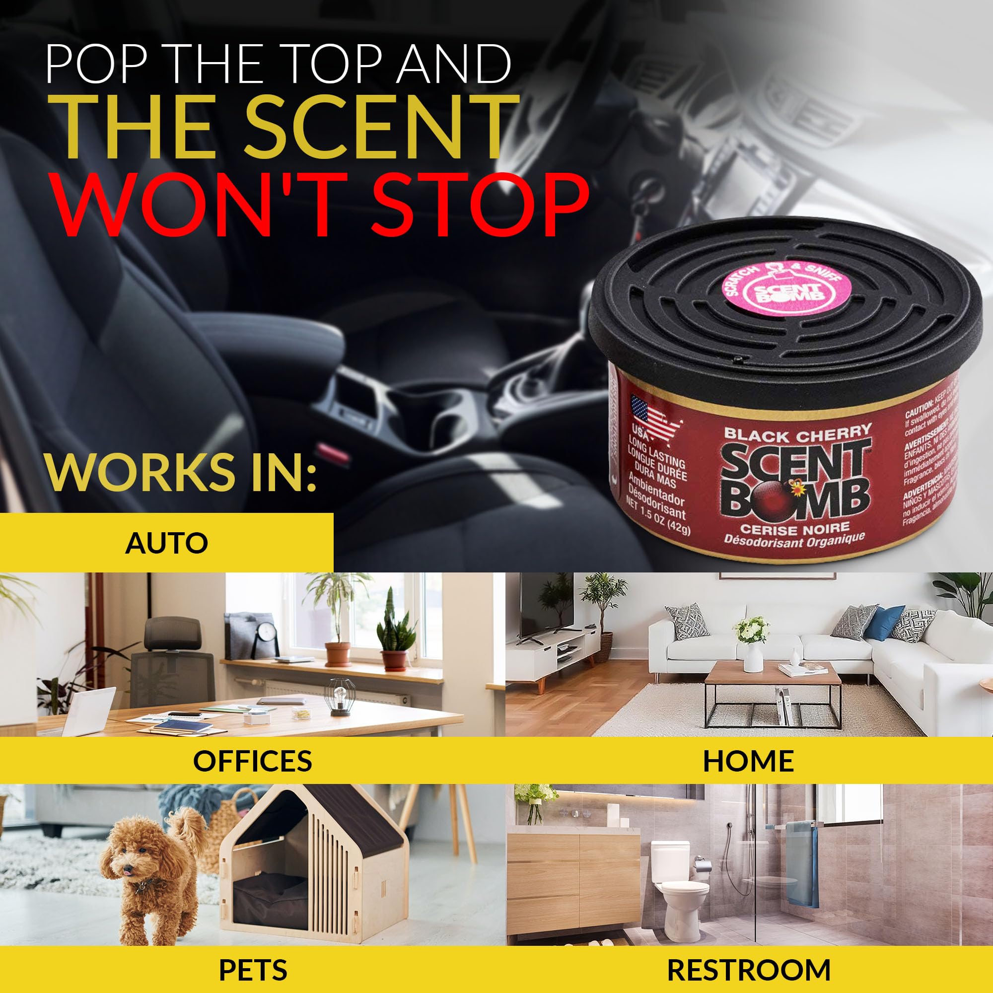 LONG-LASTING ORGANIC FRESHNESS: Each Scent Bomb Organic Can delivers powerful, long-lasting fragrance to eliminate odors, using organic, non-toxic ingredients. Perfect for cars, homes, offices, and more, for continuous freshness wherever you go.