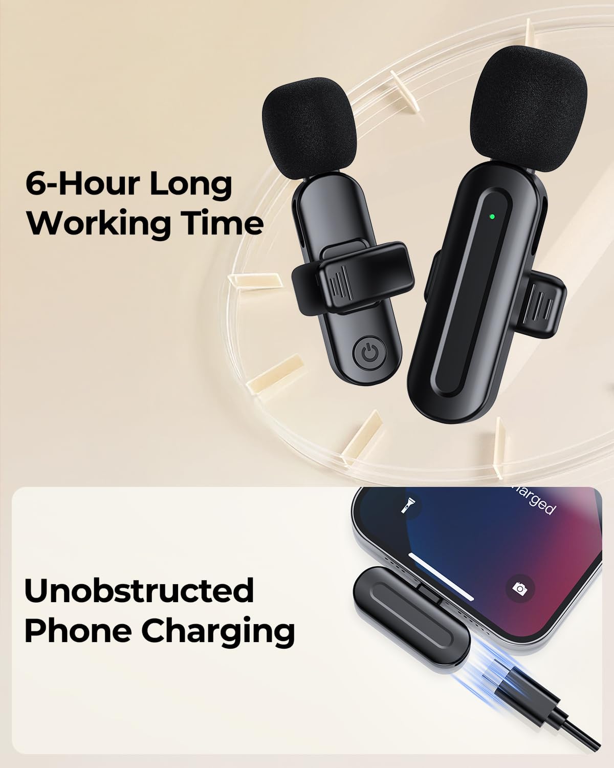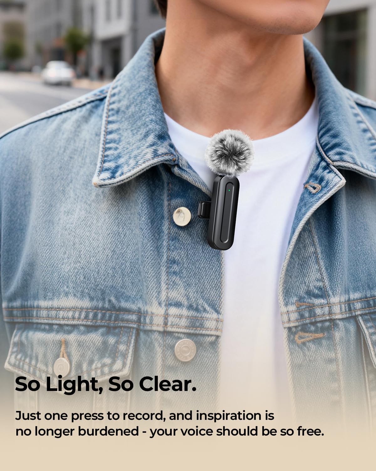 Multi-Device Support: This mini microphone offers versatile multi-device support, including smartphones like wireless microphone for iPhone, Android and computers. It functions as a reliable phone microphone and connects easily via included adapters, making it perfect for hybrid work, podcasting, and video production.