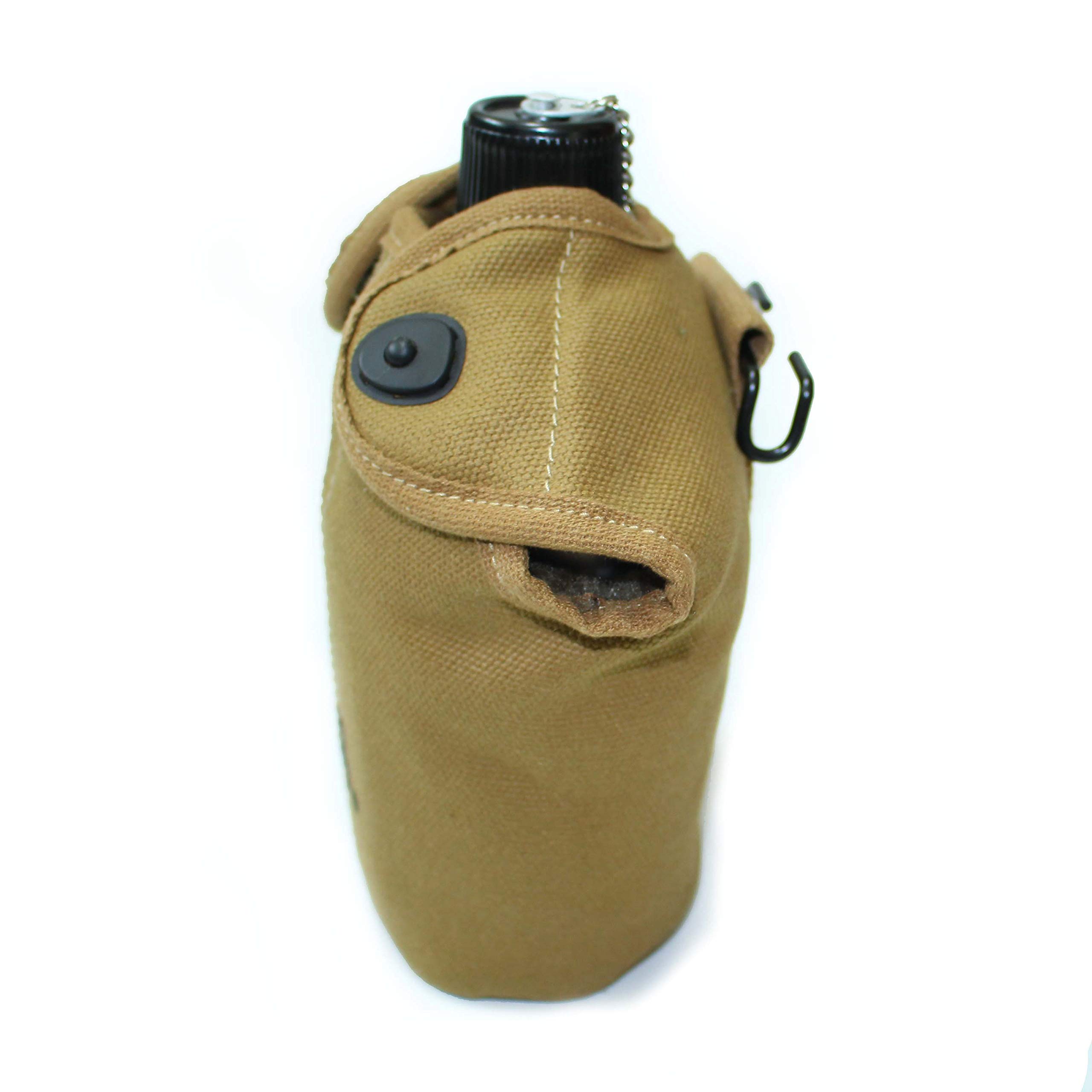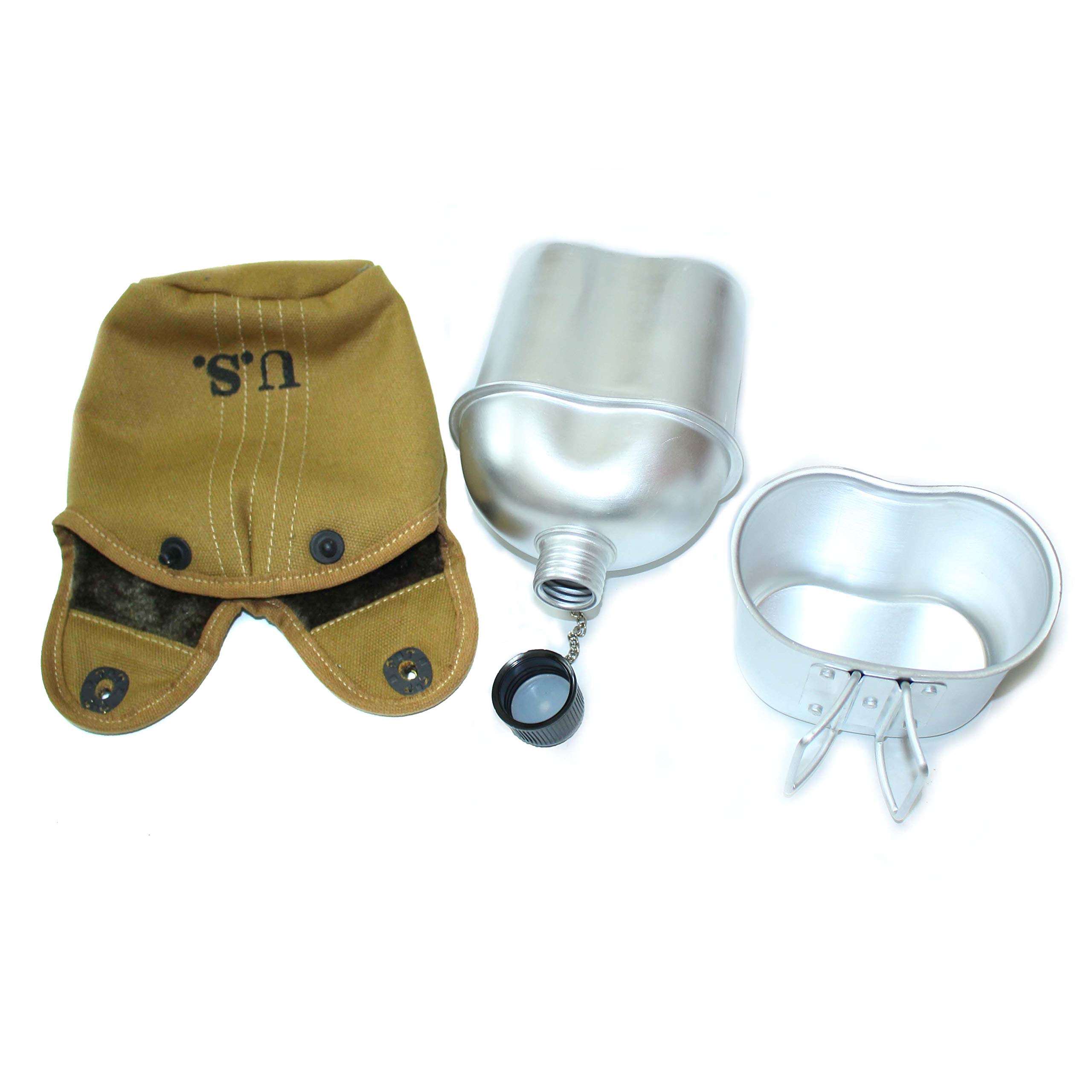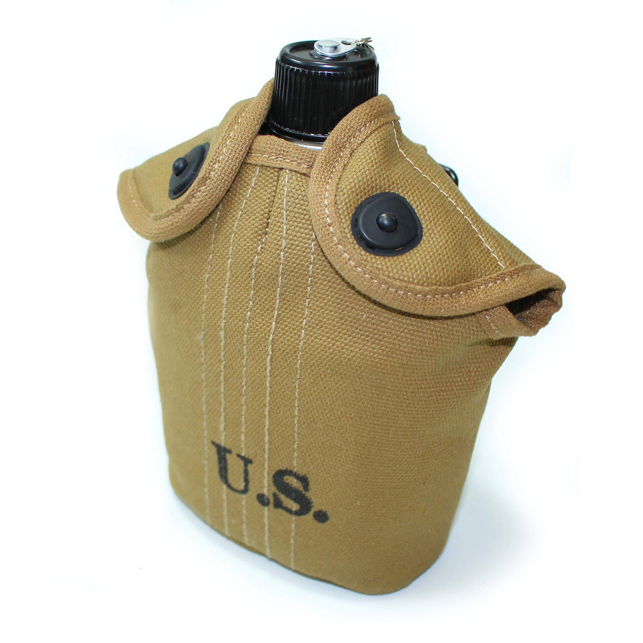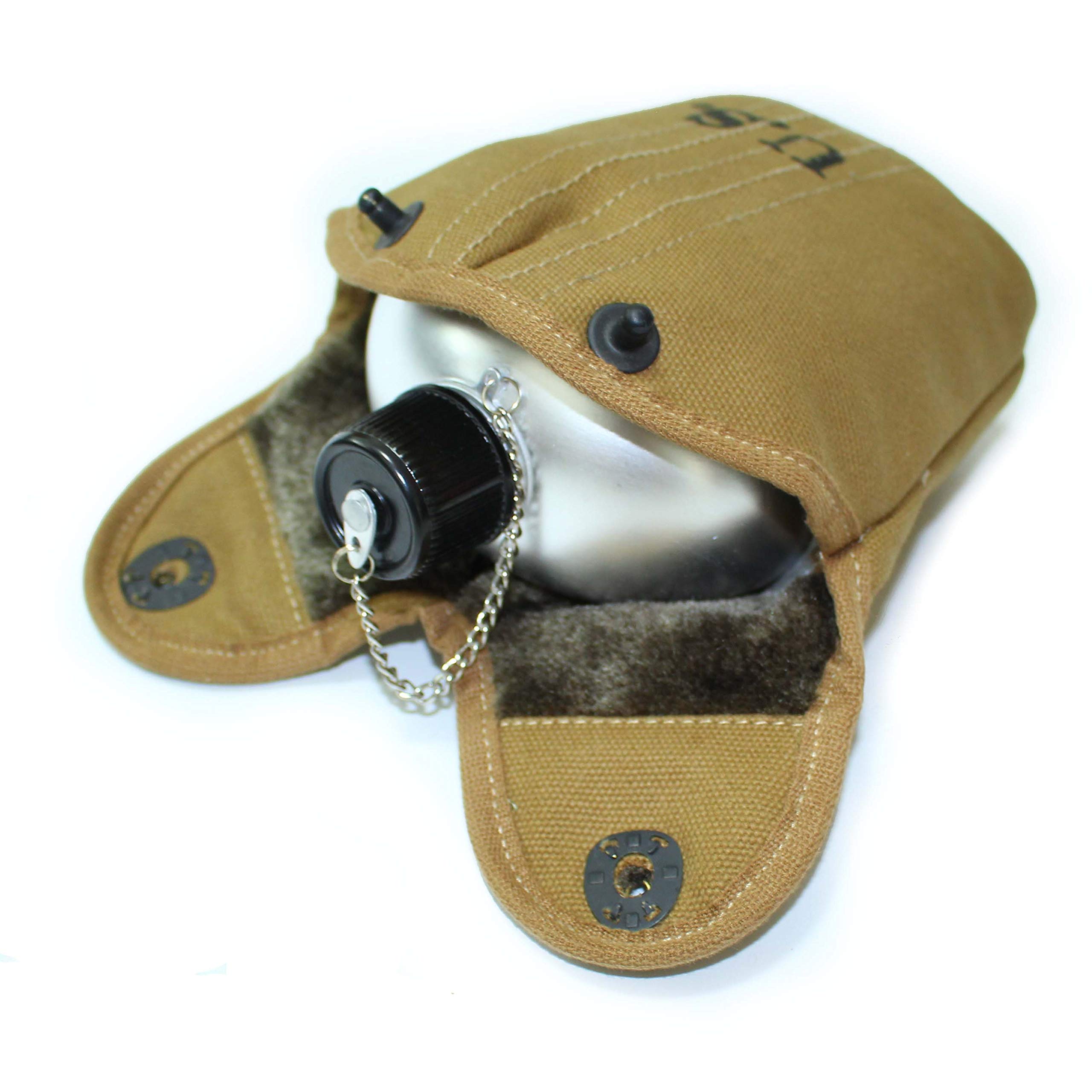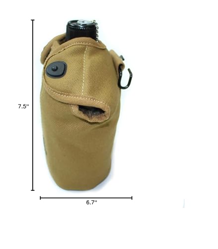 Size: 6.7 * 4.3 * 7.5 inch Weight: 0.4 KG Material: Aluminum canteen with canvas canteen cover Capacity: 0.8 L New made: World War 2 U.S. soldier canteen reproduction. The body is aluminum, cover is canvas material, it could preserve heat in some way due to fiber material inside of canteen cover