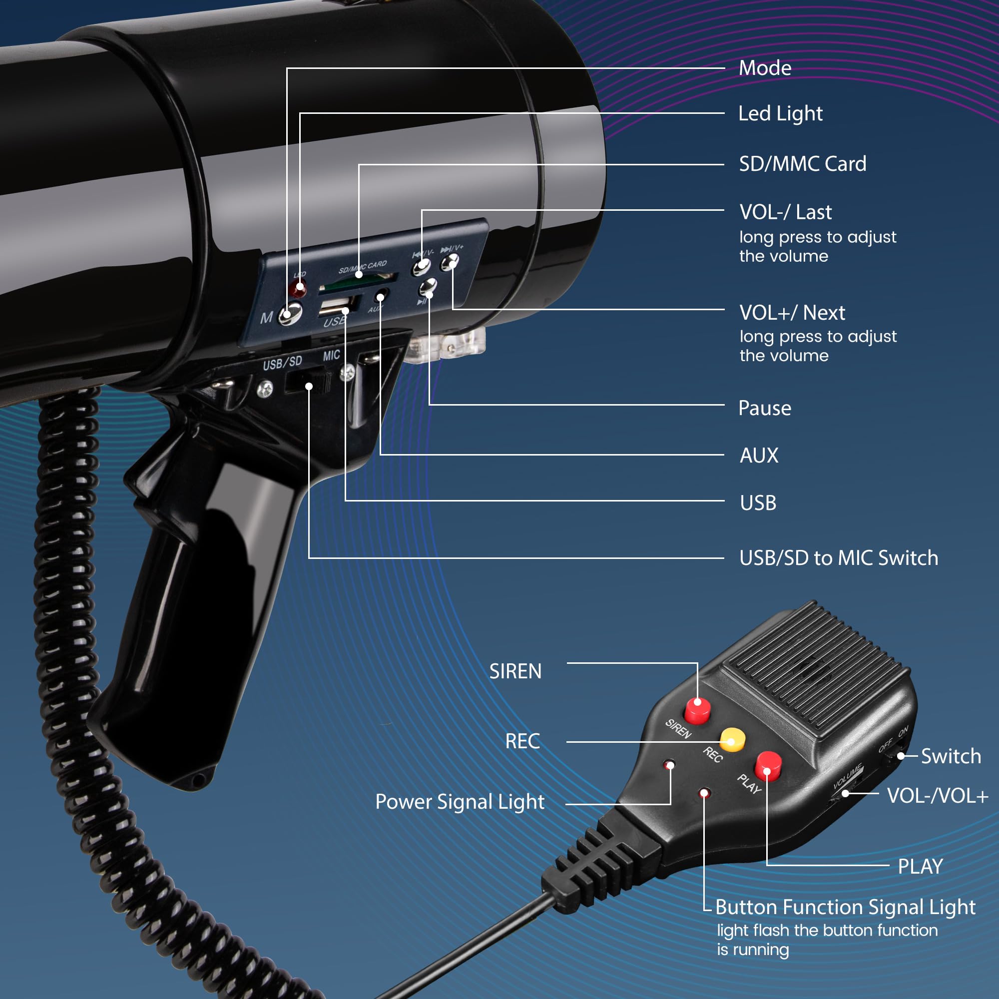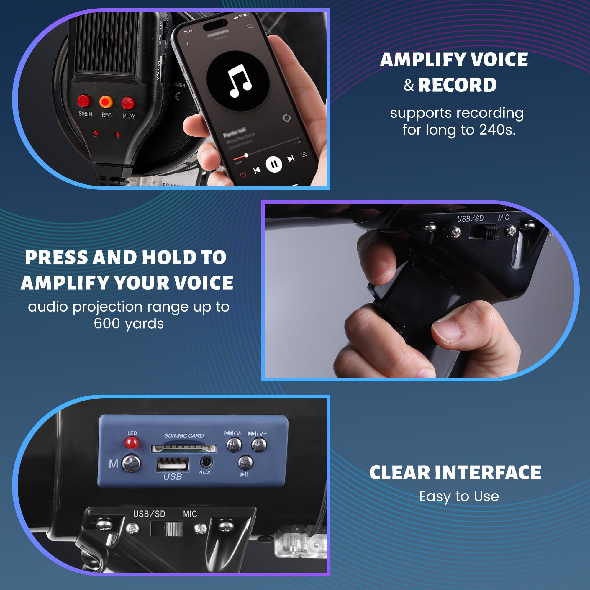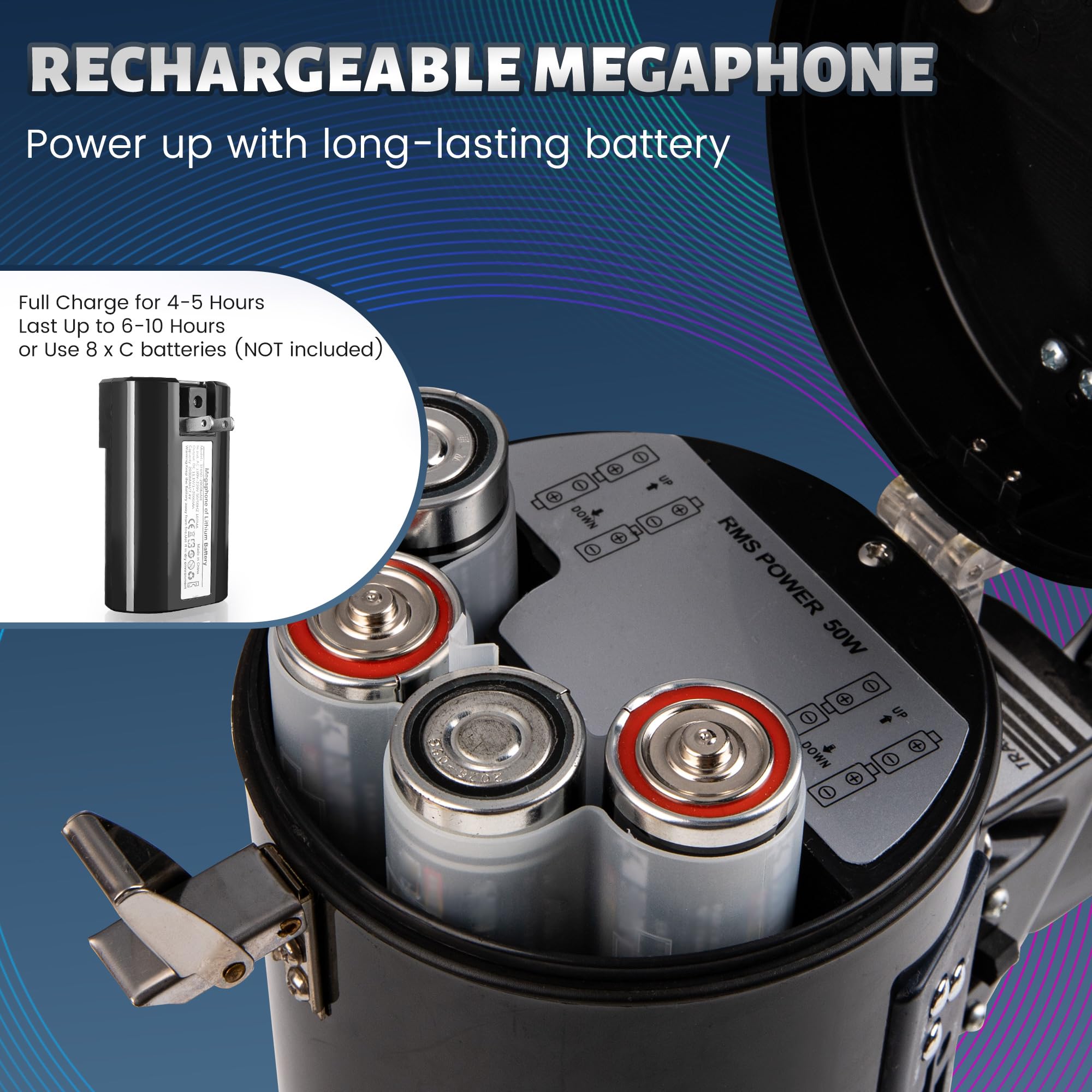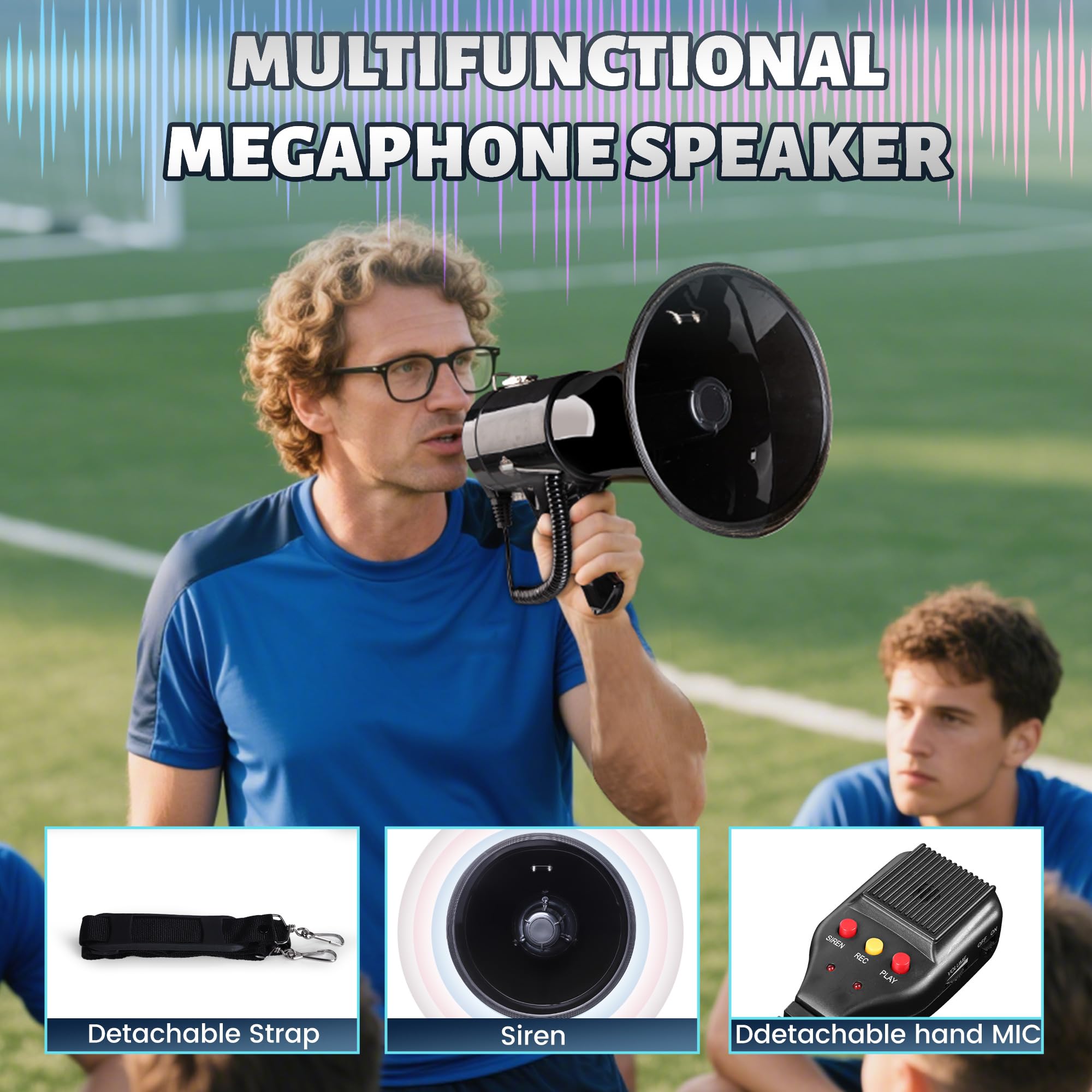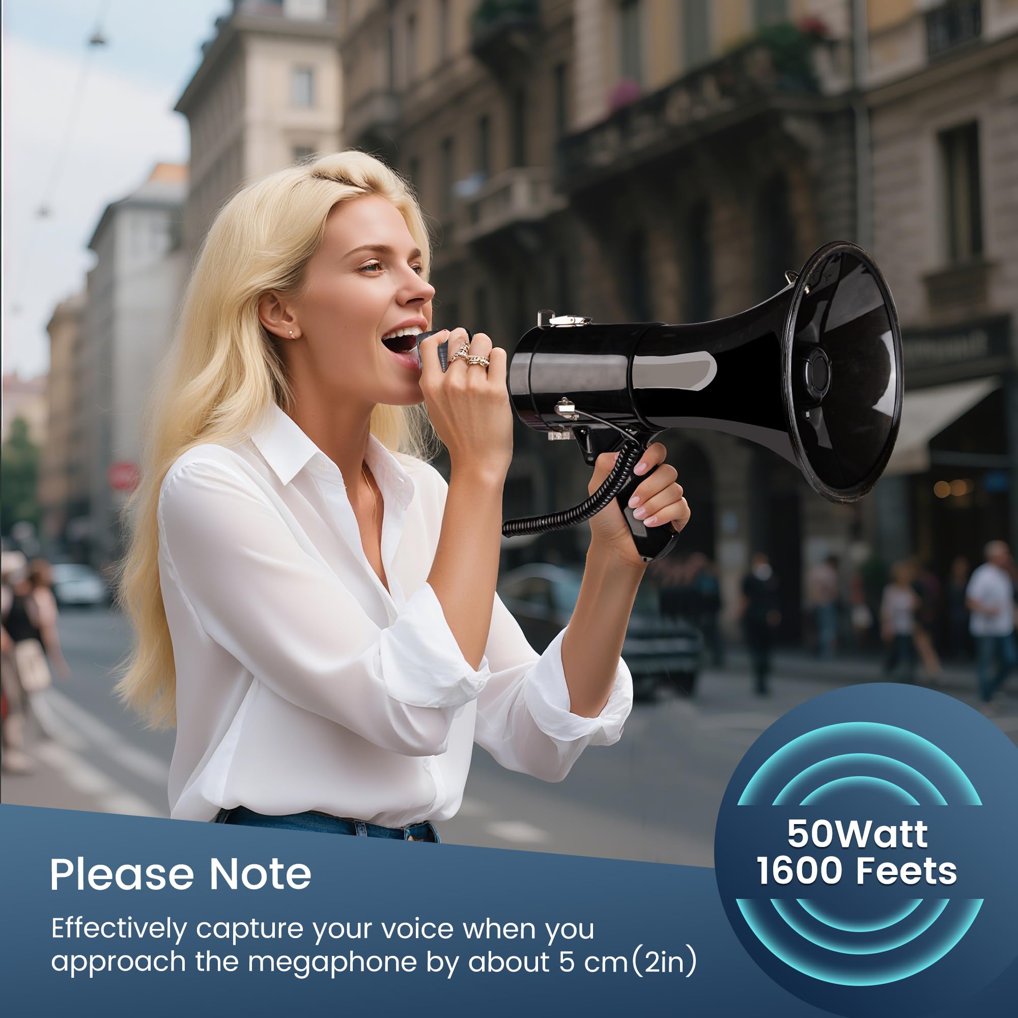 【Powerful Megaphone】 Loudmore 50W Large Megaphone is designed for military training and crowd control applications. Suitable for large outdoor activities, amplify the sound to cover 1600 feets.