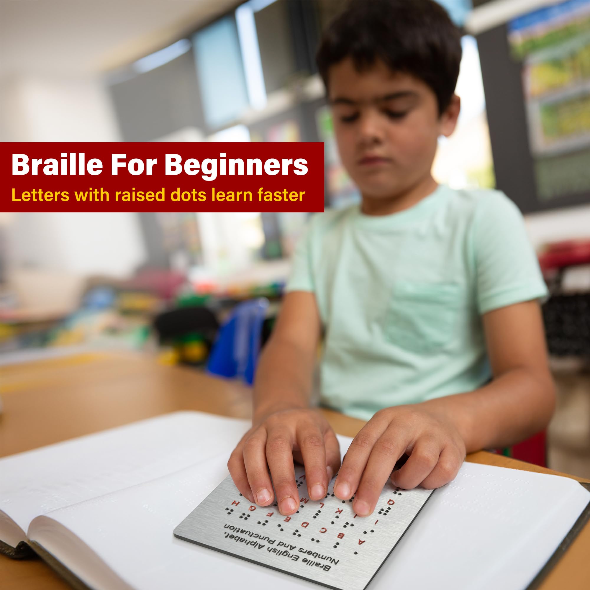 ● Long-Lasting Use: Made of quality Brushed Aluminum, this braille alphabet board is sturdy, safe to touch, and maintains its shape and clarity over time, impact-resistant and no deformation
