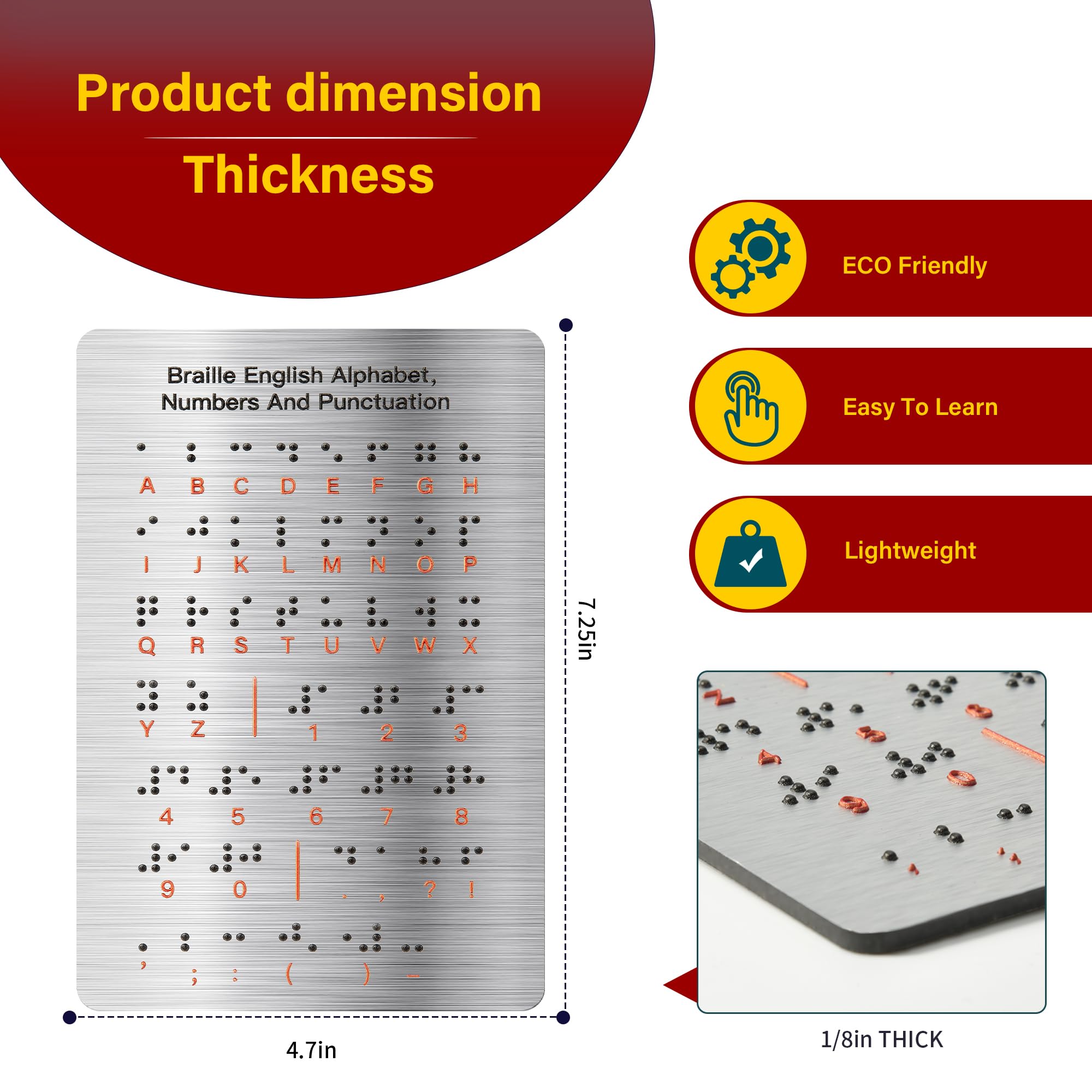 Braille alphabet, with expertly raised dots, ensures durability and superior tactile feedback, facilitating easy learning for the visually impaired or blind in any setting. Versatile Teaching Aid: Not only alphabet but numbers and punctuation are included. Use one carved dots braille alphabet is enough for braille beginners.