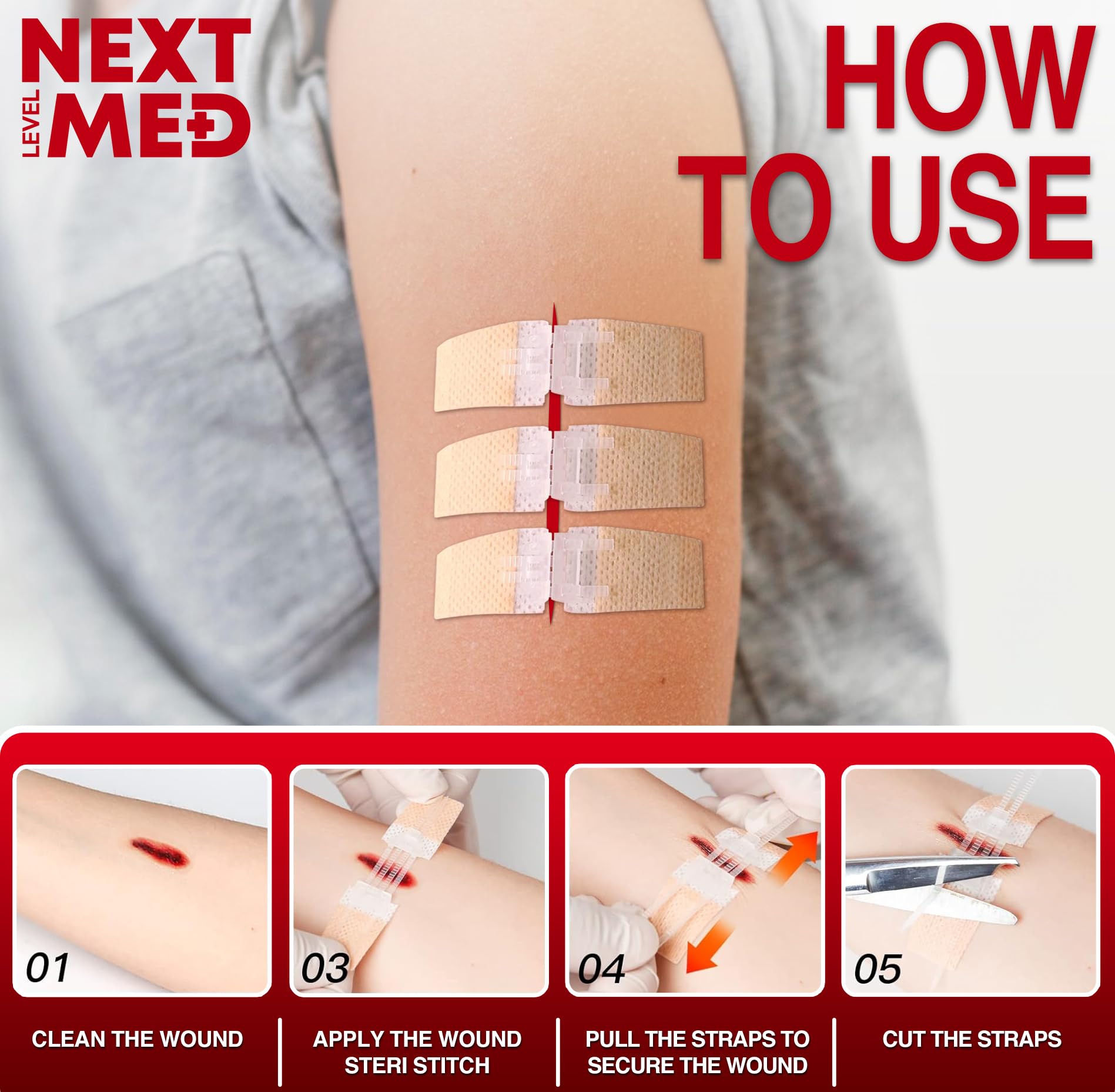 NO STITCHES: As effective as skin glue, staplers, or traditional stitches.