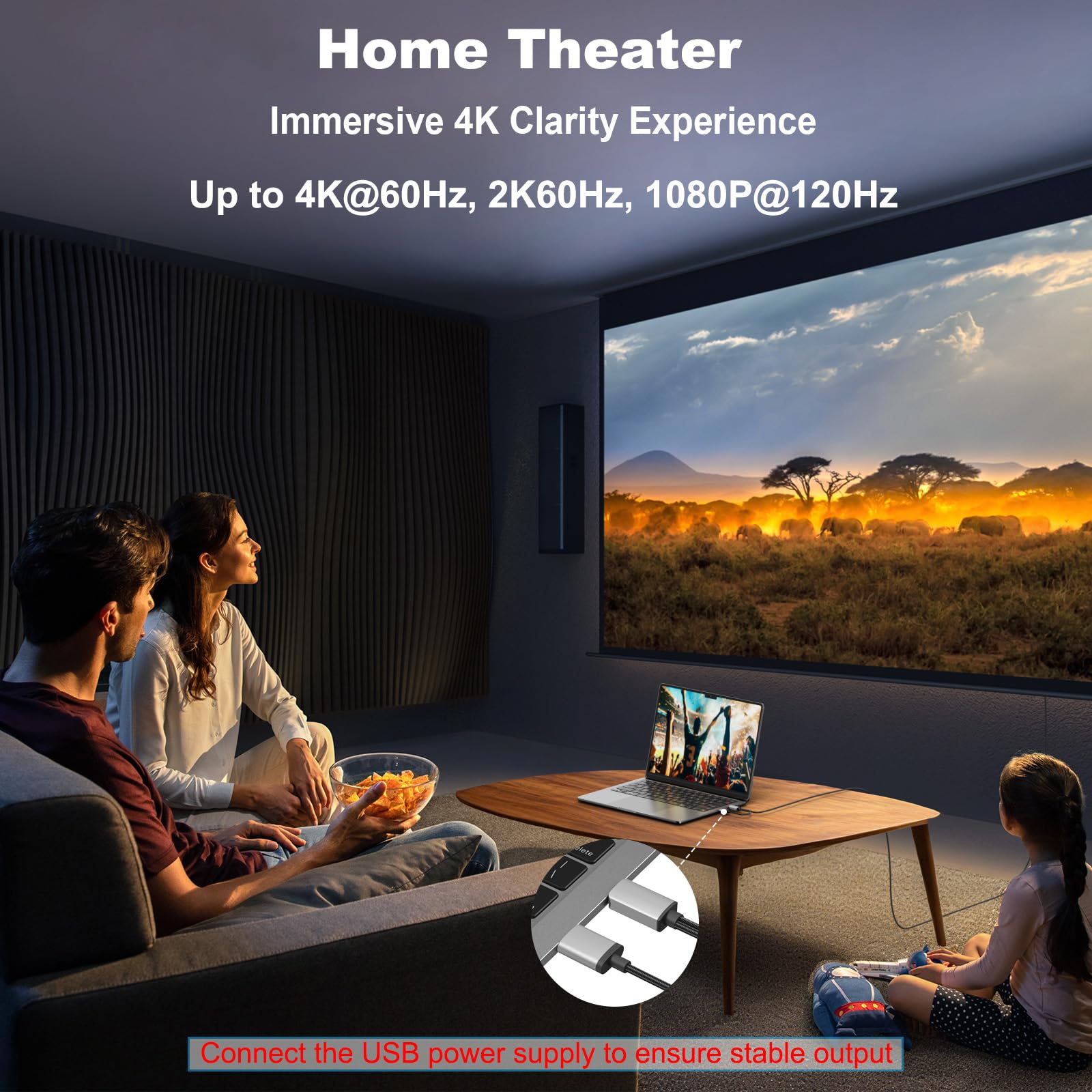 【Stunning 4K UHD Picture Quality, Immersive Audio-Visual Experience】 Enjoy breathtaking 4K@60Hz ultra-high-definition resolution and smooth refresh rates. The HDMI to DisplayPort adapter delivers exceptional visual clarity and detailed performance. Simultaneously supporting lossless audio transmission, it creates a true cinema-grade audio-visual experience. The product is backward compatible with 1080P@120Hz resolution, catering to diverse usage scenarios