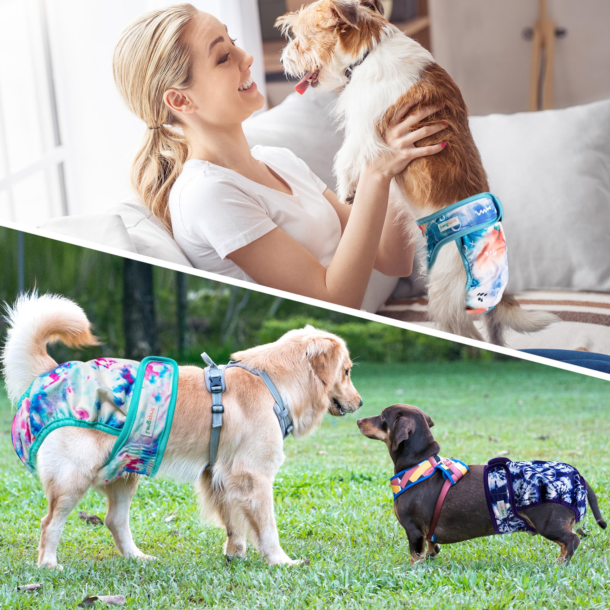 Durable & Machine Washable - Langsprit diaper for dogs design is durably built with precise stitching so it can stand up to everyday use and frequent washing. Machine wash below 30℃, tumble dry on low heat or air dry.