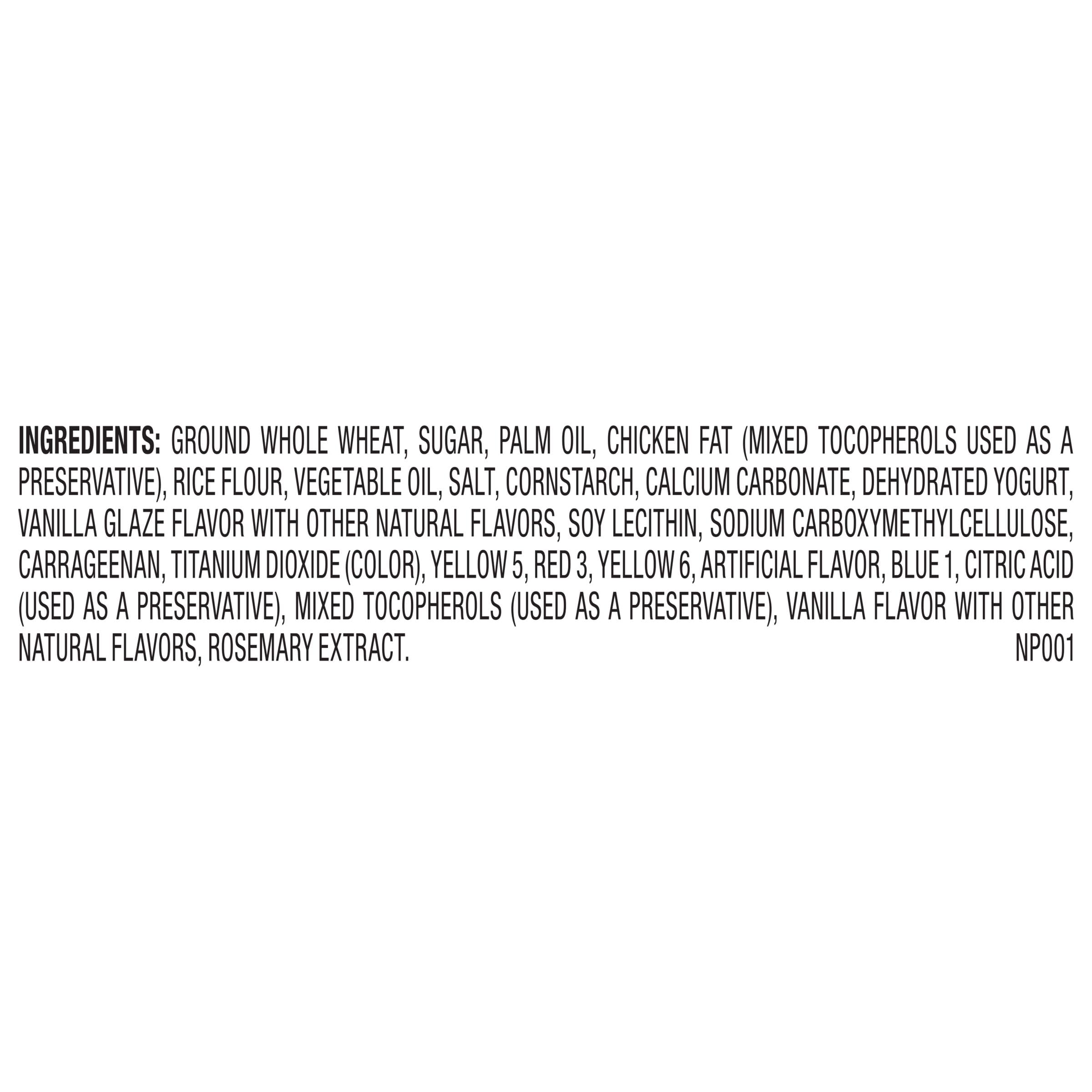 Vanilla glaze flavor biscuits dipped and drizzled in vanilla yogurt flavored coating (with other natural flavors)