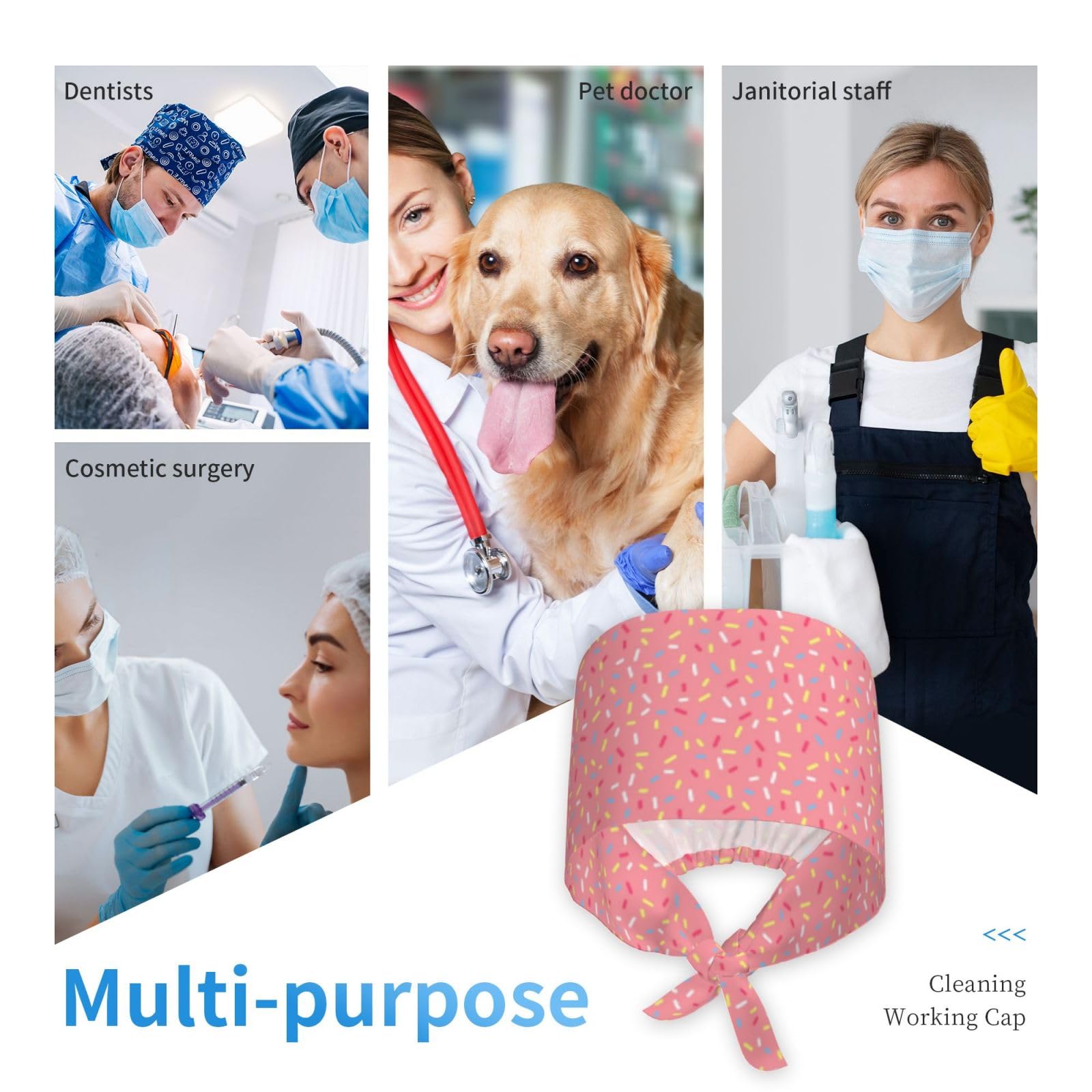 Description Are you in search of a stylish and sturdy working cap at an affordable price? Look at our versatile Cleaning Work Cap. Featuring trendy fashion printing, this working hat is both practical and long-lasting. It is crafted from high-quality polyester materials, ensuring comfort and sweat absorption. Easy to wash and quick to dry, this cap is perfect for various occasions that require hair restraint. It ties securely at the back to keep your hair in place. Key Features: Material: 100% polyester. Size: 8.3 x 5.3 inches. Fits most sizes with its adjustable strap for a comfortable fit, ideal for long, thick hair. Package includes: 1 x Working Cap. This multi-functional cap is suitable for a wide range of uses - from working in beauty spas, dental clinics, and research institutions to fun cosplay parties. It caters to both men and women in different industries, serving as a chef cap, hygiene hat, beauty spa hat, facial care hat, bleach-friendly hat, fitness hat, chemo hat, or cleaning cap for hair loss. Additionally, our cap makes a thoughtful gift for Christmas, Thanksgiving, Mother's Day, birthdays, and other special occasions. Show your care and appreciation for your loved ones with this practical present. Maintaining this cap is a breeze - simply hand wash or machine wash gently, avoid bleach, and let it dry naturally. Don't delay any longer - click the "Add to Cart" button now to make this versatile working cap yours!