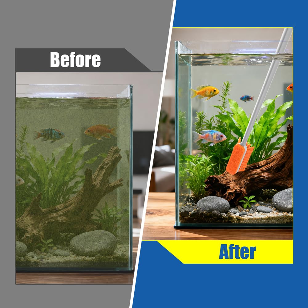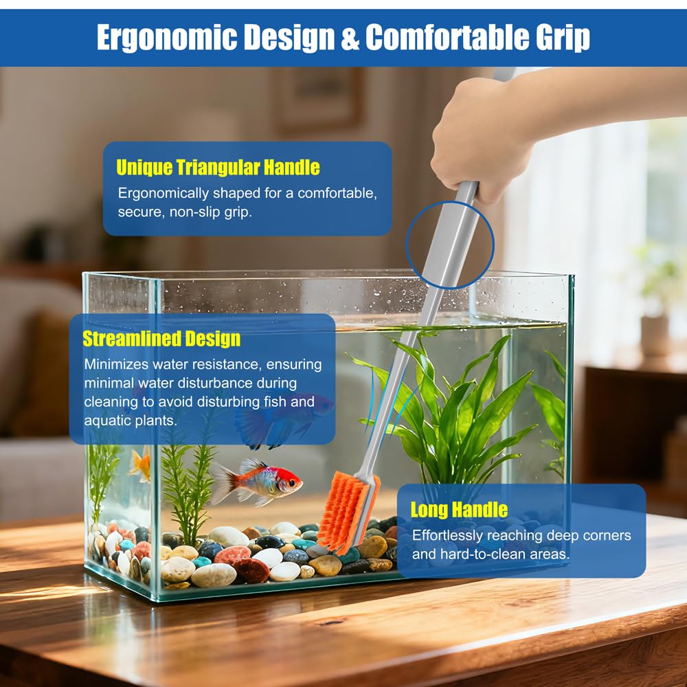 【DaToo Fish Tank Cleaner】: Still worried about algae blocking your view and grime buildup harming your fish? This cleaning brush, specially designed for small aquariums, is the perfect solution! Its ergonomic triangular handle offers a comfortable grip, while the 3-in-1 brush head precisely tackles grime without scratching the tank surface , and is tough and durable. Restore crystal-clear visibility to your aquarium in no time, ensuring a healthy environment for your aquatic companions.