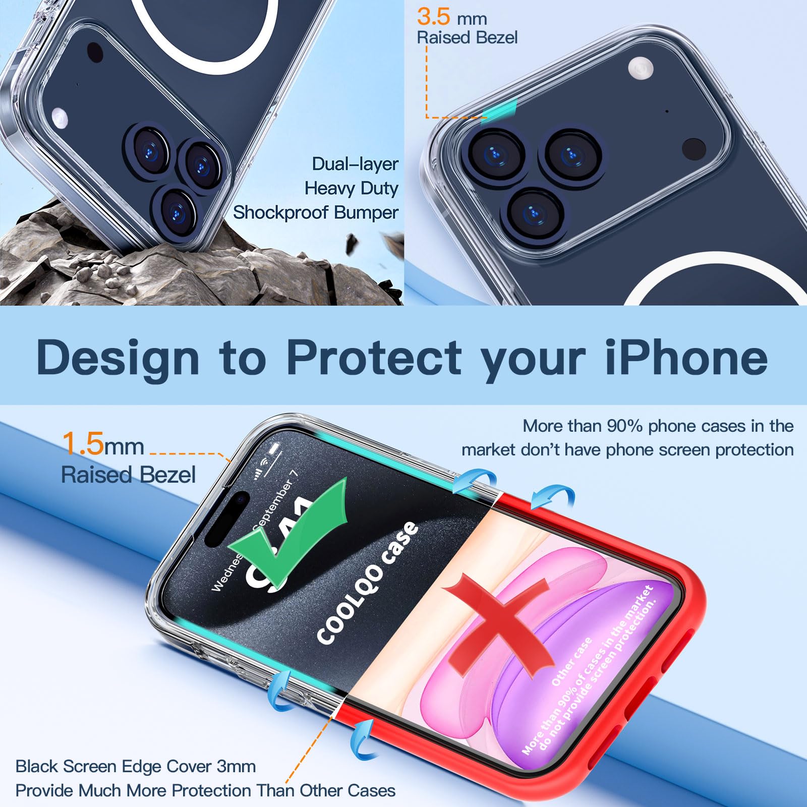 Super Magnetic Ring: COOLQO case has built-in magnet array, which includes 36 strong magnets, provides a safe and efficient wireless charging experience. It can be attached to any magnetic accessories securely and firmly. No interference/loss to the charging of your phone.