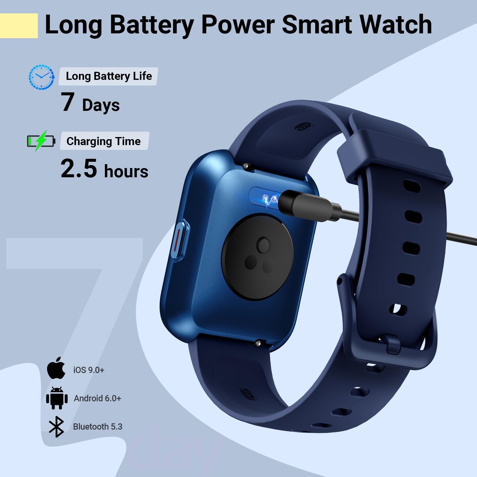 Wide Device Compatibility & Long Battery Life: Smartwatch for Android and iOS is compatible with a wide range of devices running iOS 9.0 or above and Android 6.0 or above, including various smartphone models from Apple, iPhone 6/7/8/9/10/11/12/13/14/15/16 series, Samsung, Google, and other major brands. The smartwatch charges quickly in just 2.5 hours and offers up to 7 days of battery life with typical usage, extending up to 30 days in standby mode.
