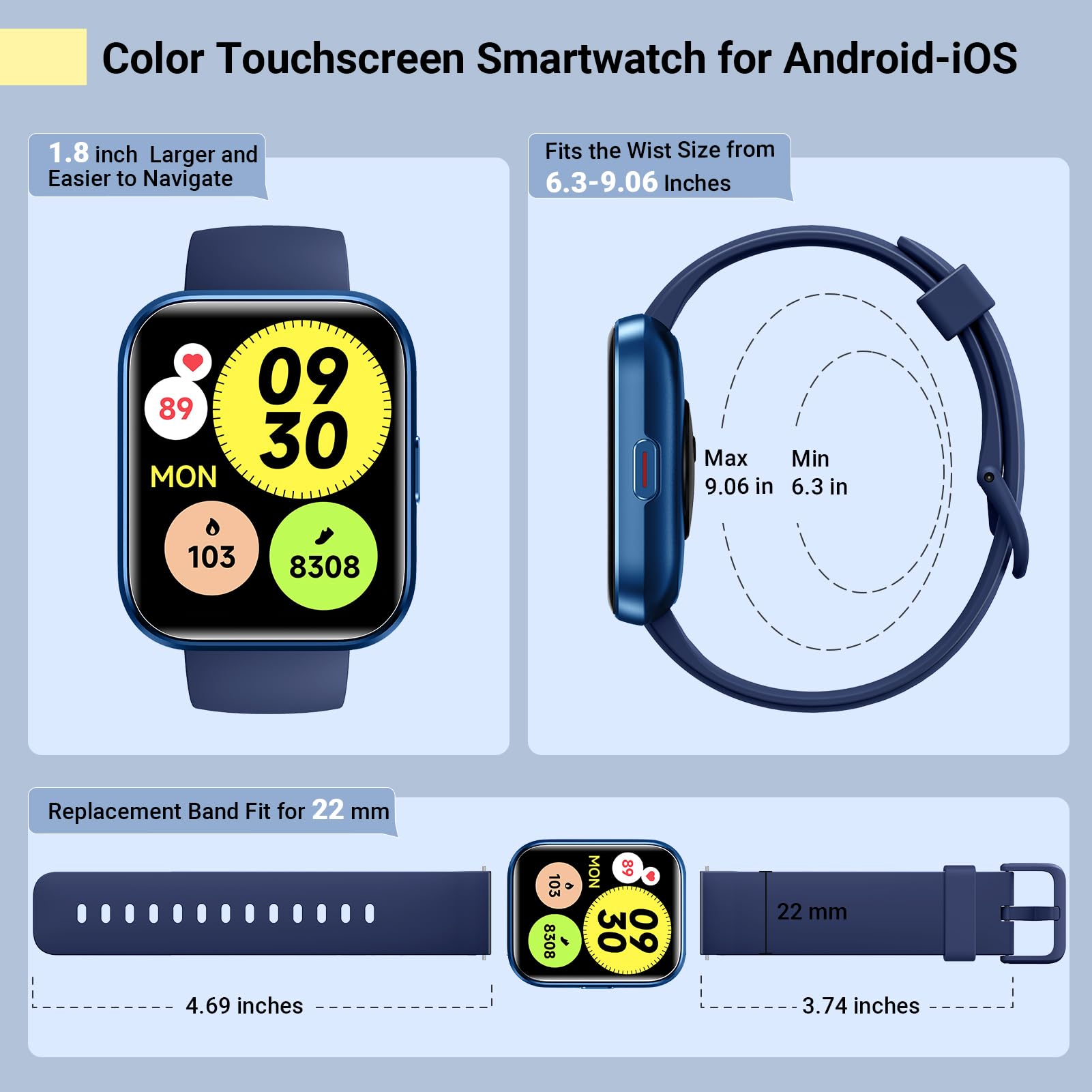 1.8-inch HD Display & 110 Customizable Watch Faces: This touchscreen watch boasts an HD vibrant screen with excellent touch responsiveness. Choose from a variety of over 110 watch faces to suit your style, or make it your own by setting your favorite photo as the watch face.