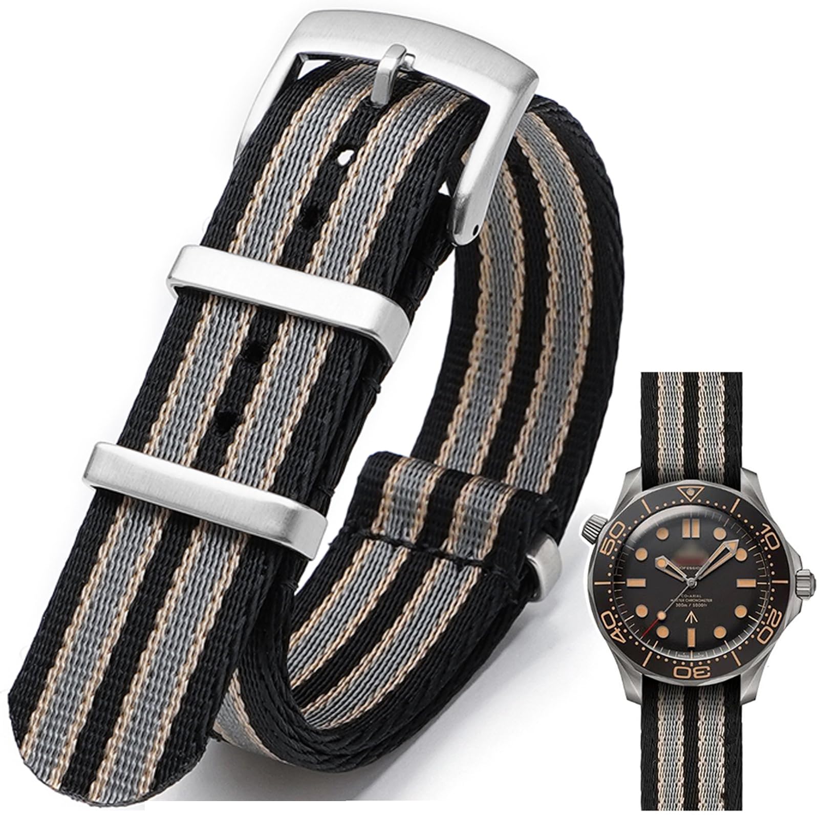 【Premium Material】Our nylon watch band are made of 1.5mm thick premium ballistic woven nylon materials, soft, breathable, lightweight and waterproof. And buckle fabricated from 316L surgical grade stainless steel. Nylon strap is heat sealed and stitched, Neat stitching make the band durable. The surface of the watch band is smooth, feels soft and comfortable. The heavy duty stainless steel buckle is also the latest fashion style, solid and sturdy at the same time.