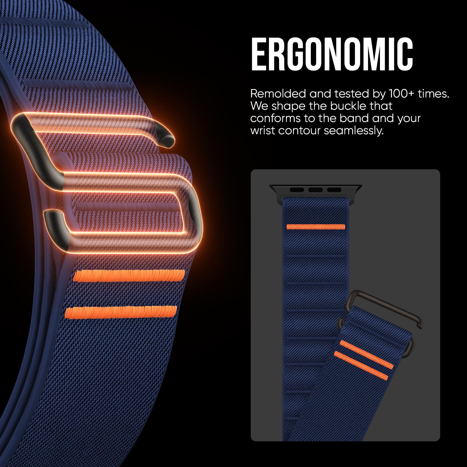 Ergonomic. Your Comfort in Mind: Remolded and tested by 100+ times, the stainless steel buckle finally comes in a perfect S, the ultimate shape that conforms to the apple watch stretch band and your wrist seamlessly, offering a secure, snug fit.