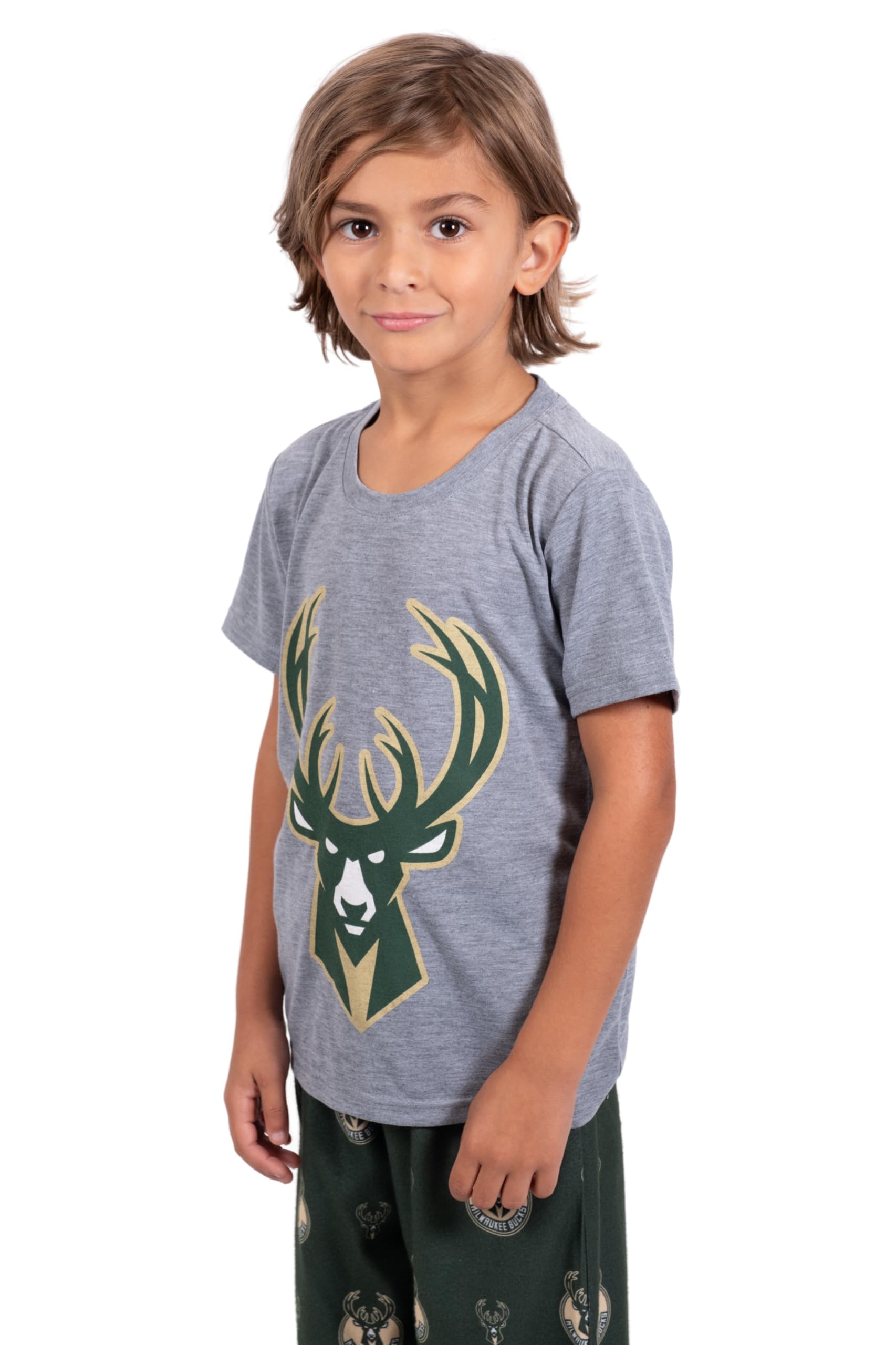 TEAM PRIDE: Kids can show their NBA team pride from top to bottom with this set. The bottoms have an all-over print with the team's primary and secondary logos. The top has one large screen print of the primary logo across the front.