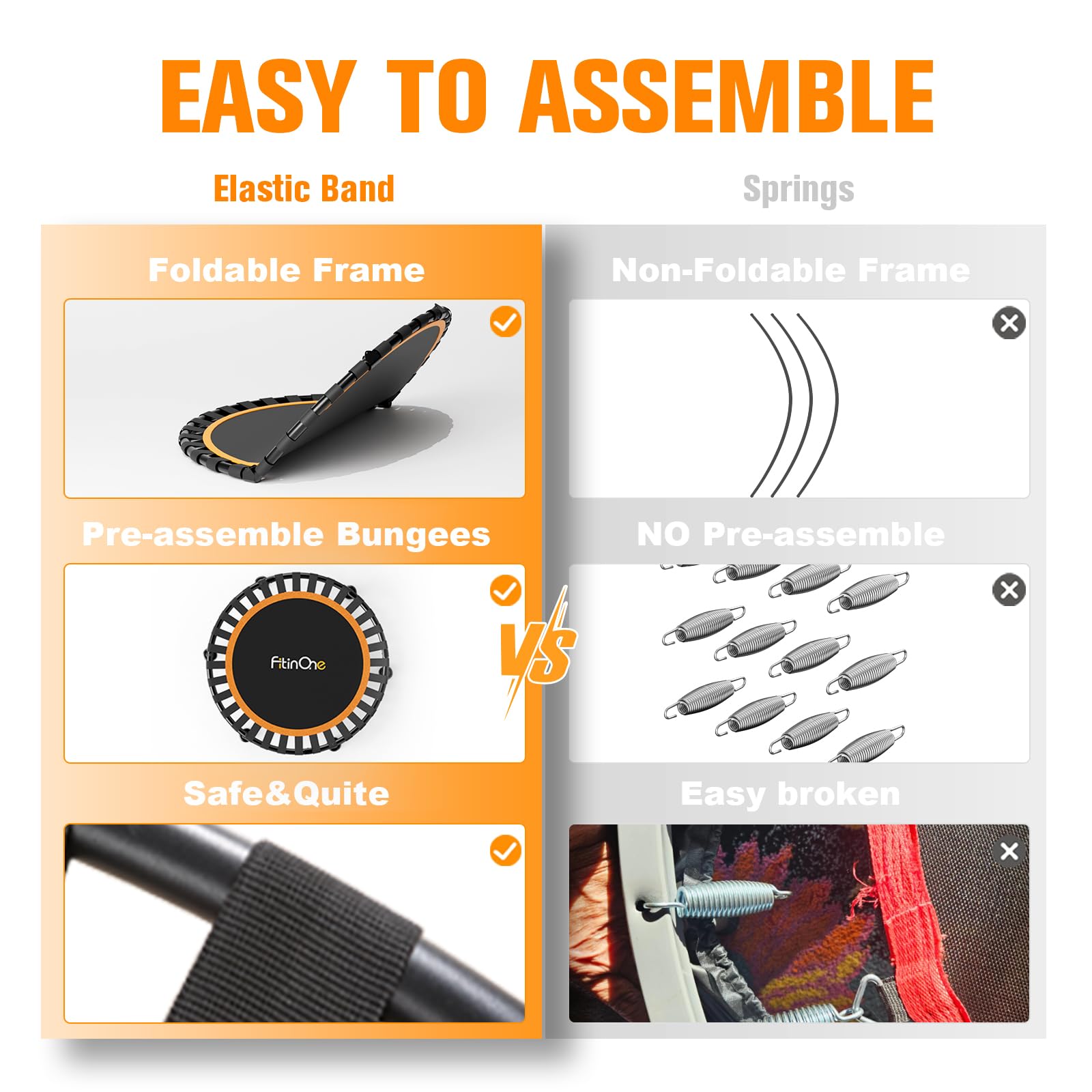 【Easy to Assemble】The FitinOne fitness trampoline comes 70% pre-assembled and can be fully set up in just 10 minutes using our special tool.