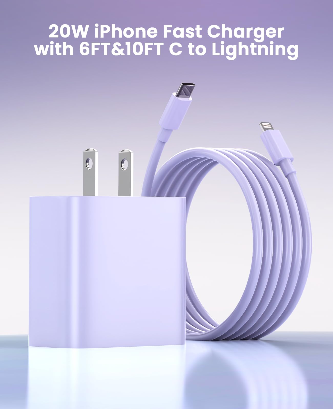 【What You Get 】2 pack of USB-C iPhone charger and 2 pack of 6FT&10FT USB-C to Lightning charging cable are packed in a box,1 year worry-free refund and replacement guarantee. If you have any questions, don't hesitate to contact us! We promise to solve your problems within 24 Hours!