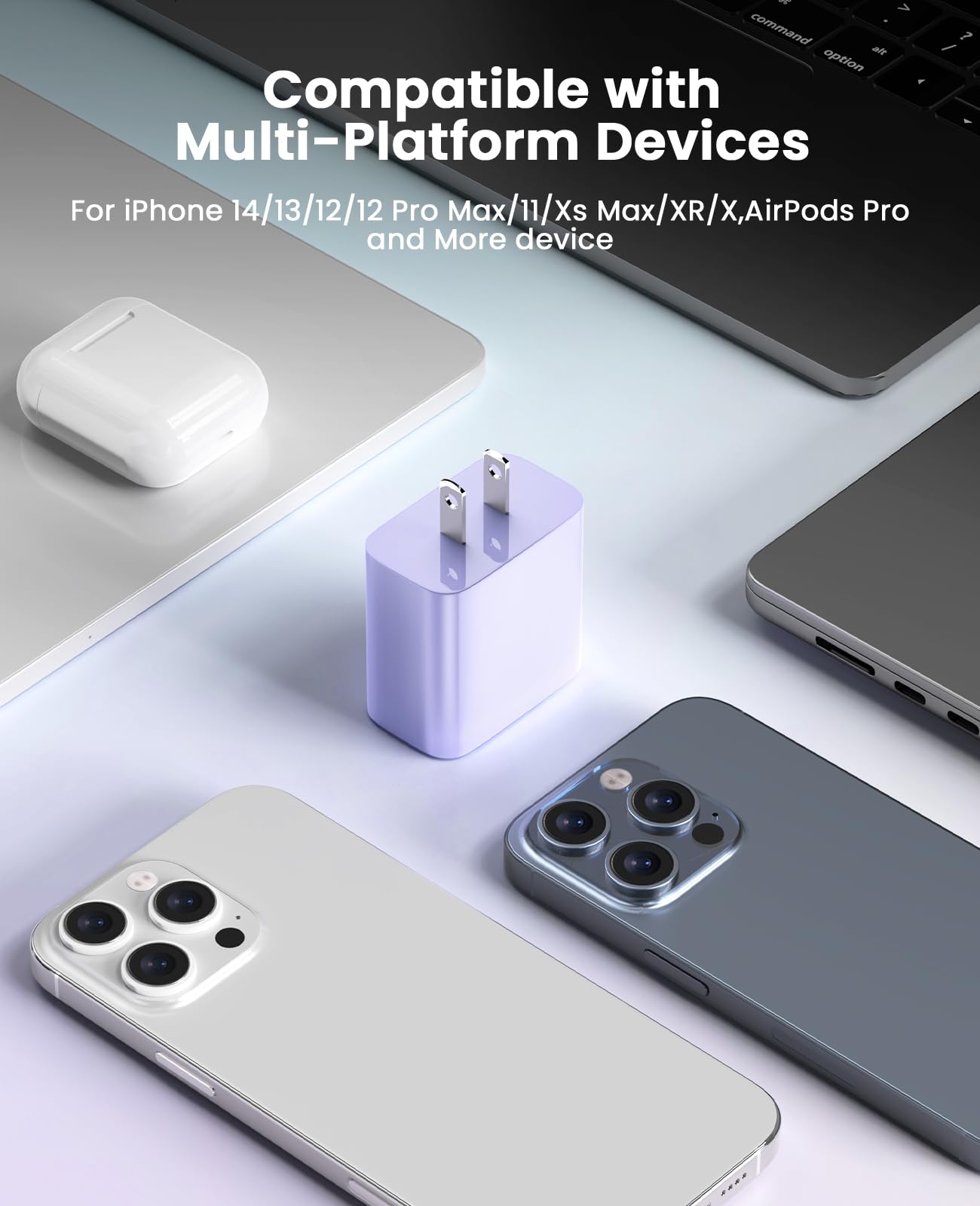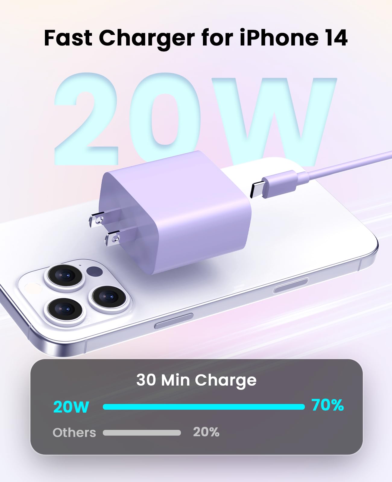 【3X Fast Charging】The 12W 5V 3A USB-C port PD fast adapter wall charger and 6FT&10FT usb c to lightning fast charging cords,That is,it will charge your iPhone up to 50% power in just 30 minutes,and only takes 1.8 hours to charge your iPhone fully to save 1.5hrs more time for you!
