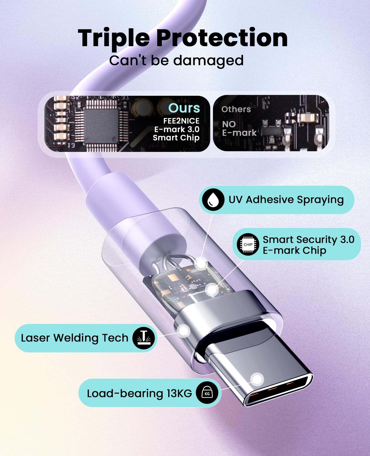 【Superior Safety Fast Charging】FEEL2NICE lightning charger has multipotent safety system ensures complete protection for your lightning devices. The ETL certified wall charger built-in over-voltage protection, features a stable voltage. the lightning cable built-in smart chip to match the current required by devices automatically.