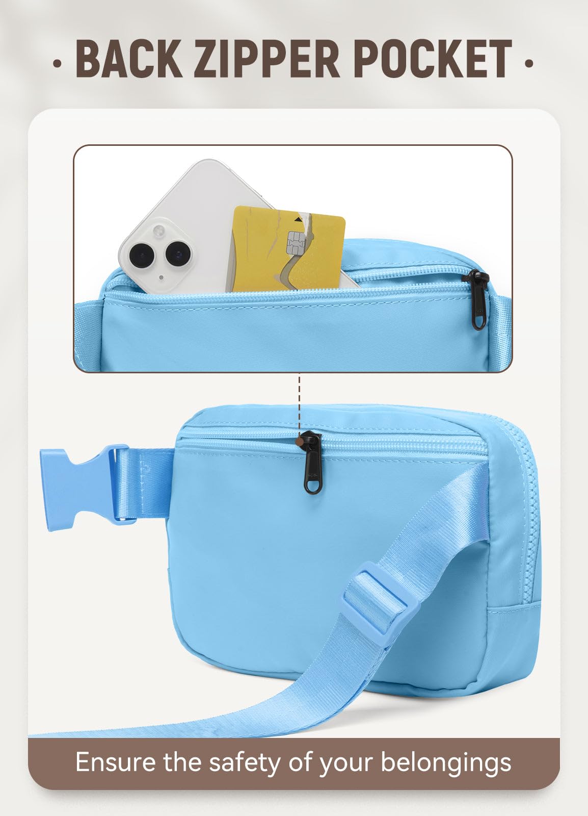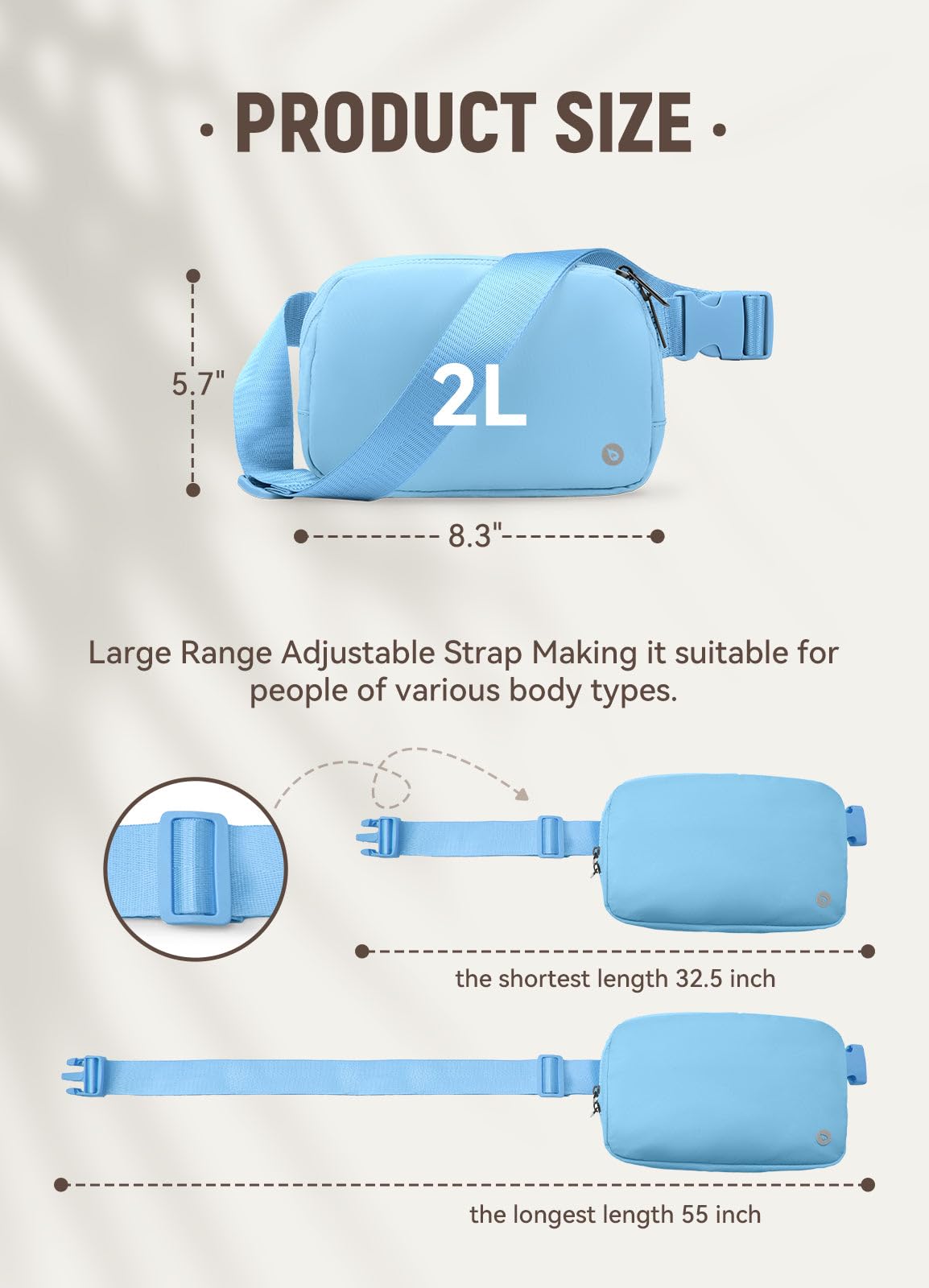 Large Range Adjustable Strap: The strap is adjustable from 32.5" to 55"(the length includes buckle&bag), allow you to wear this fanny pack as a waist bag, backpack, or crossbody bag according to your needs.