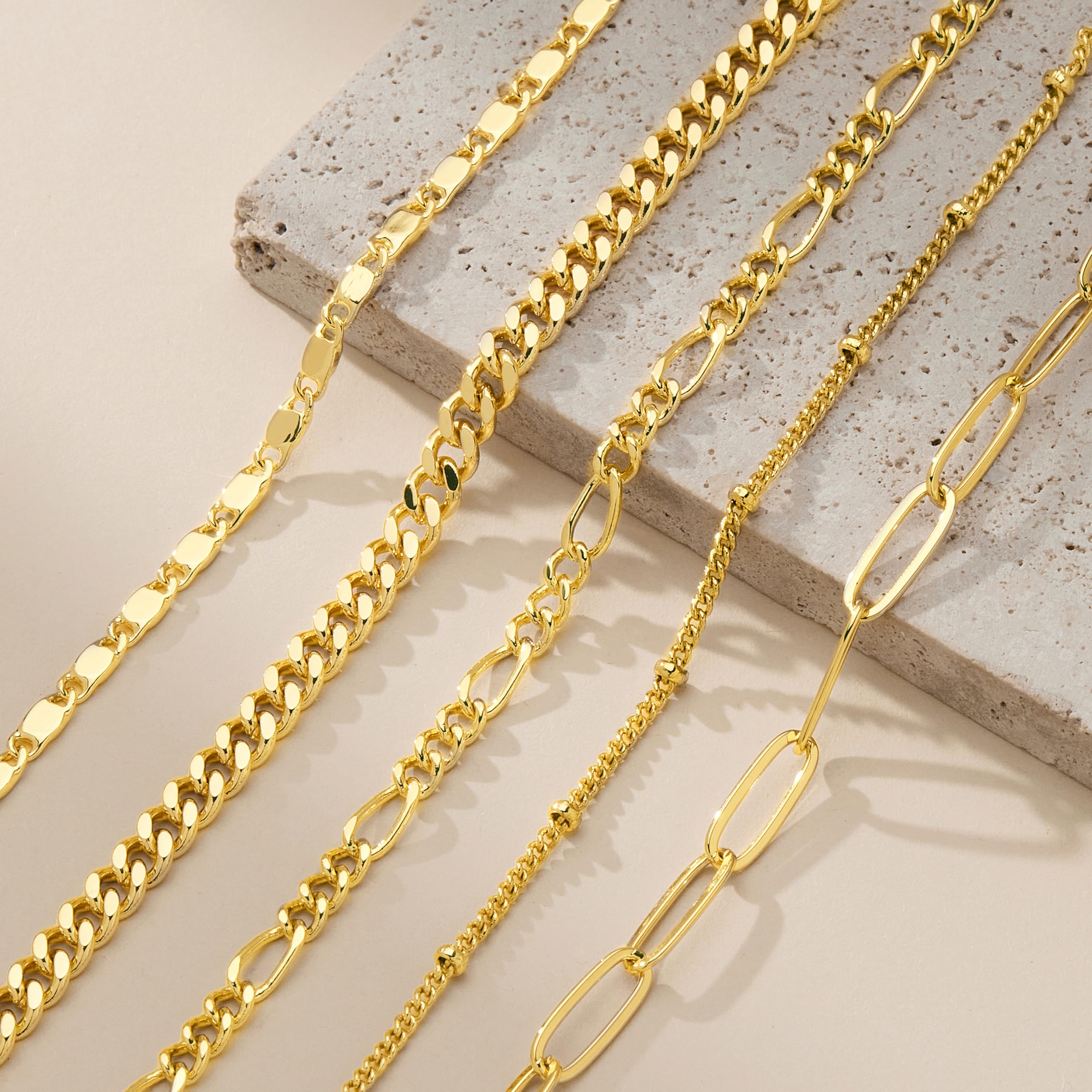 5 Separate layered gold bracelets:This gold stackable bracelets for women consists of a 5 style chain bracelets. Including satellite chain/paperclip link chain/mirror chain/figaro chain/cuban link chain. You can wear all of them or separate. Stack them or wear them solo for your everyday look
