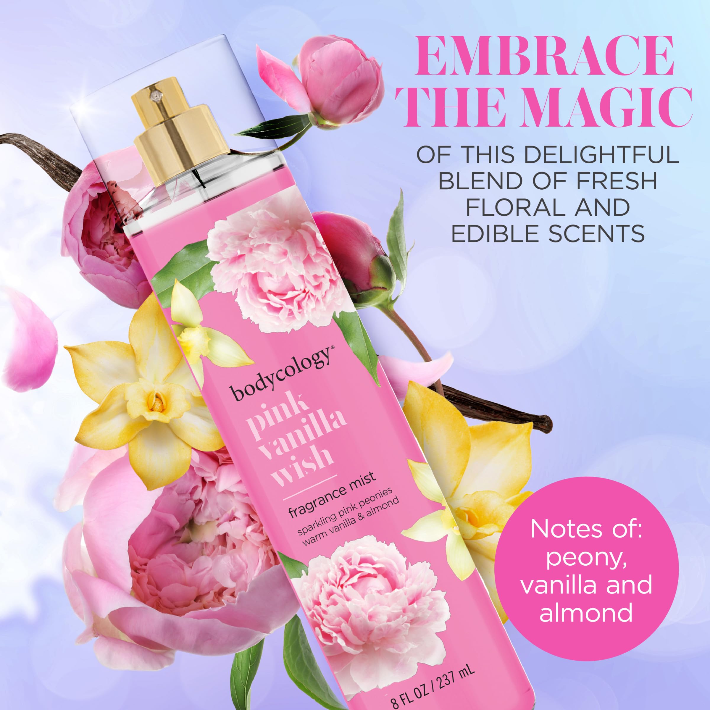 EMBRACE THE MAGIC: While surrounded by this sparkling blend of warm vanilla & pink peony