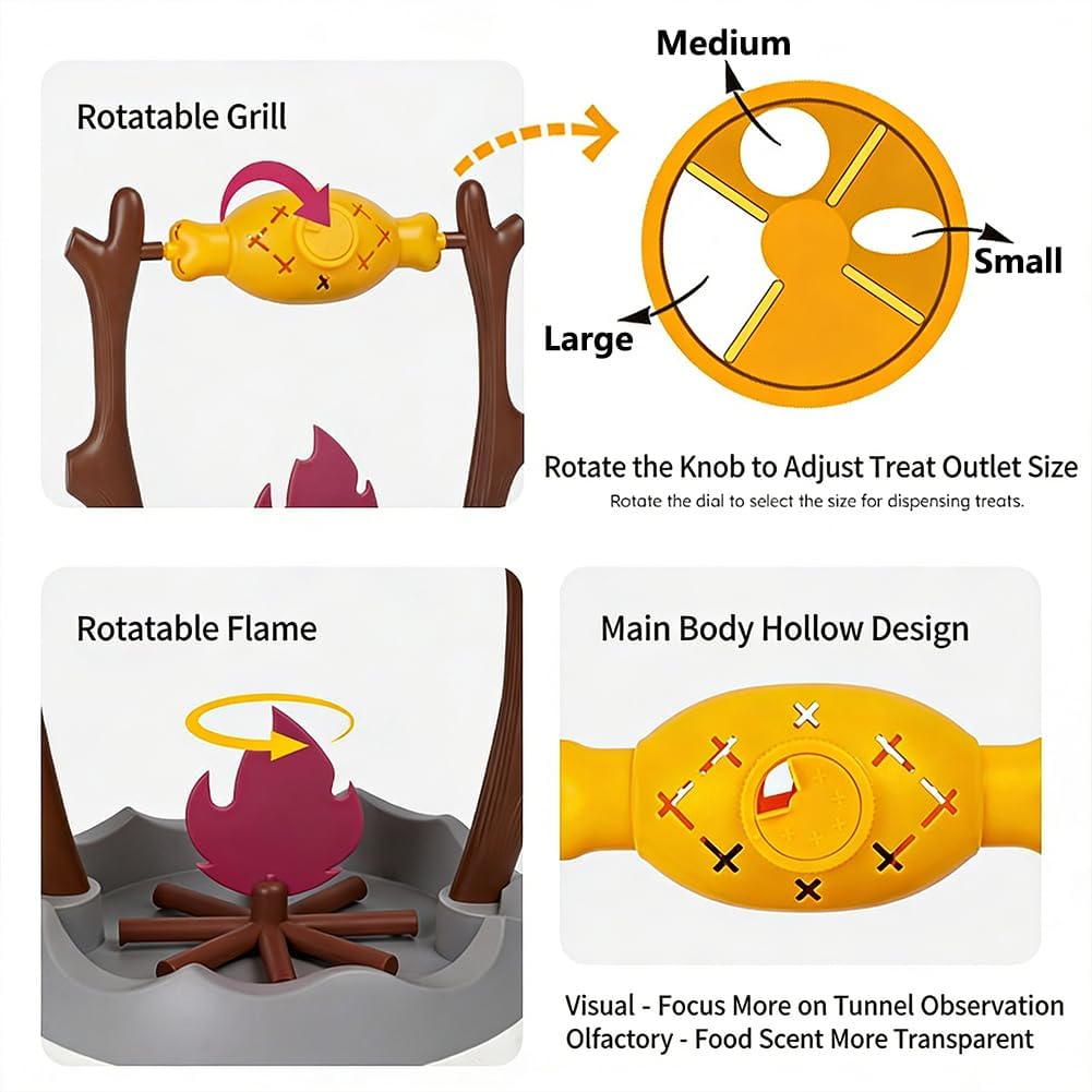 Eye-catching yellow and unique campfire design will grab your cat's attention during playtime!