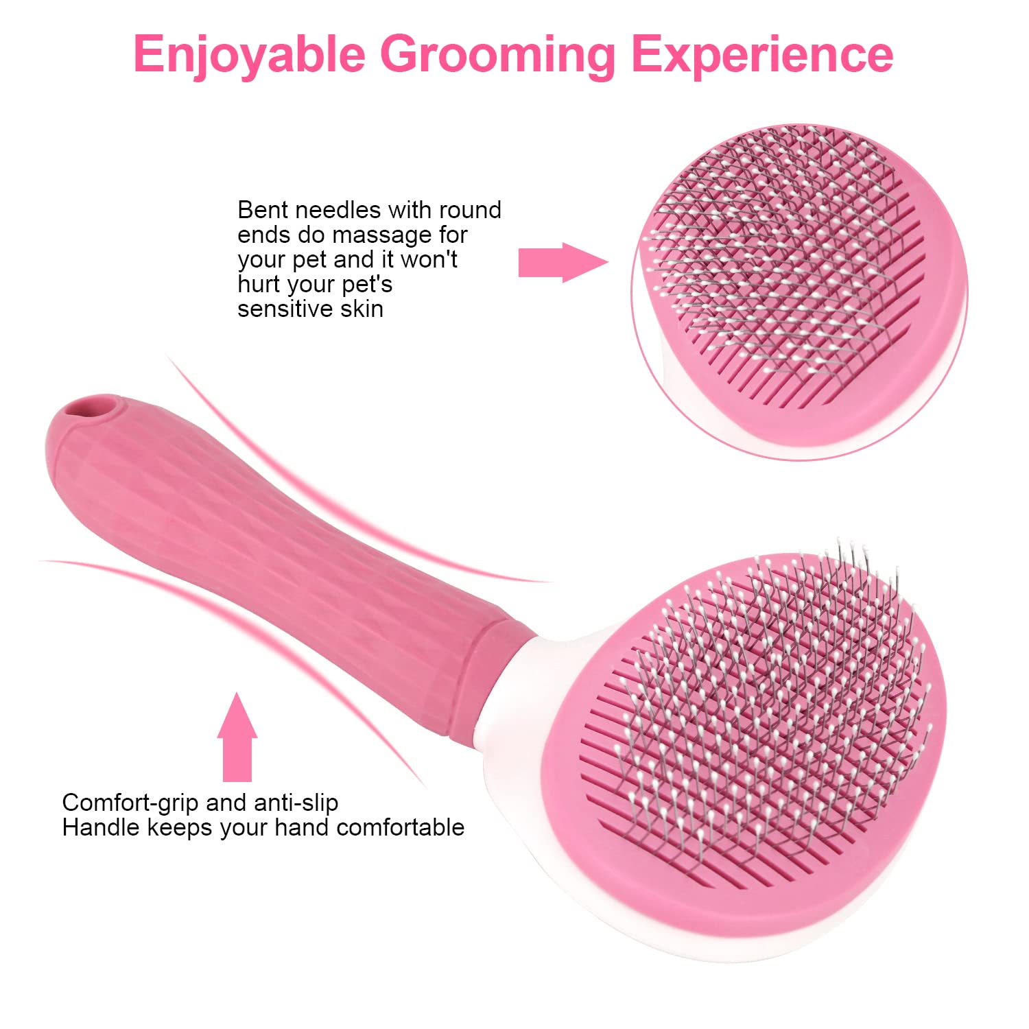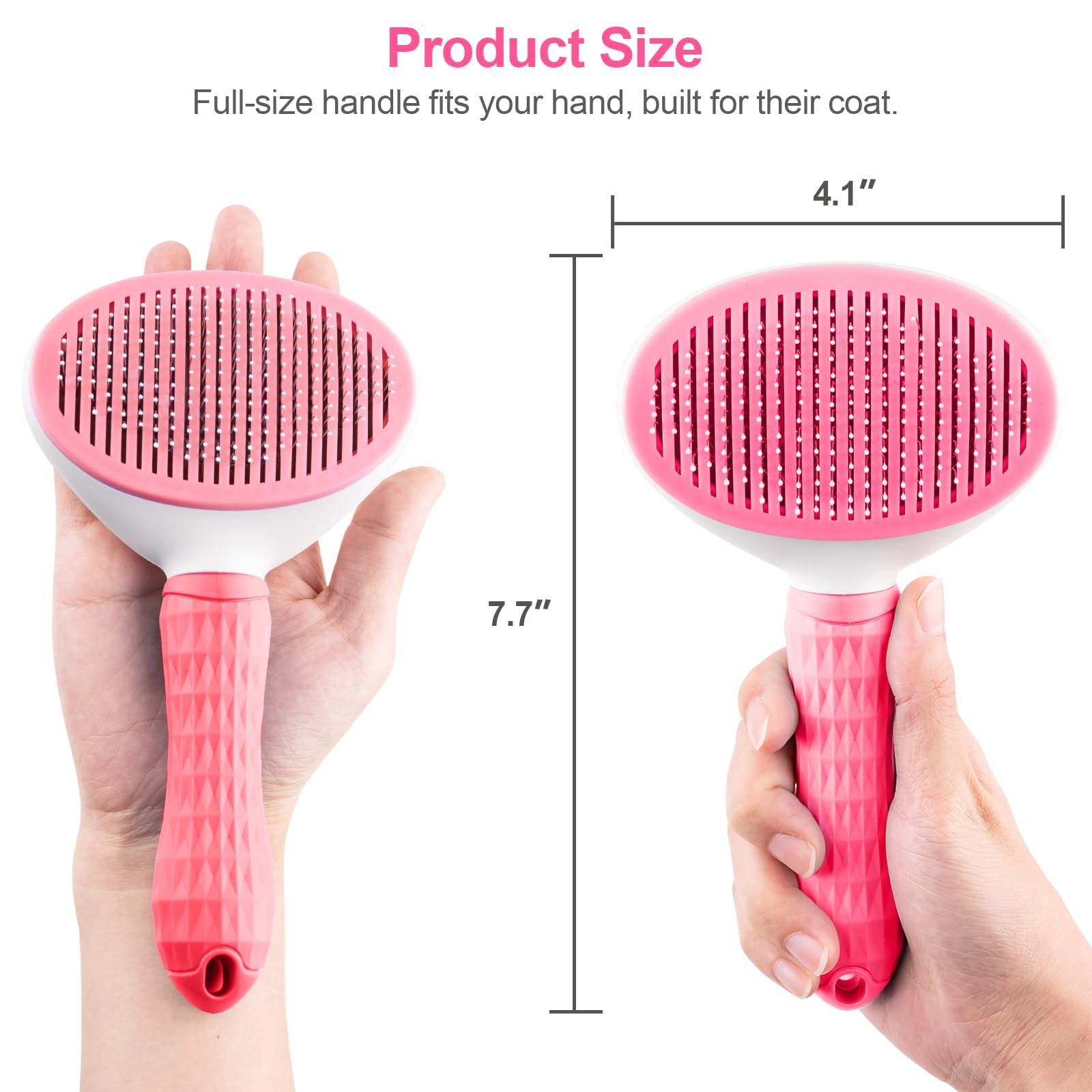 Comfortable and Nonslip Handle: Our cat shedding brush is designed with a comfort-grip and nonslip handle, and this self cleaning cat brush also has a massage function for your hand and you won't get tired easily when you brush your pet