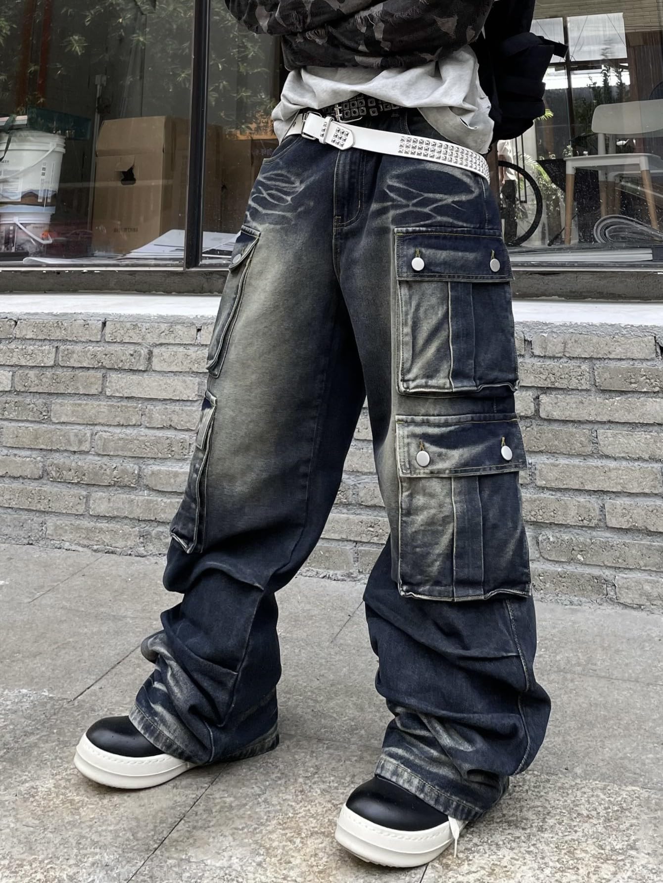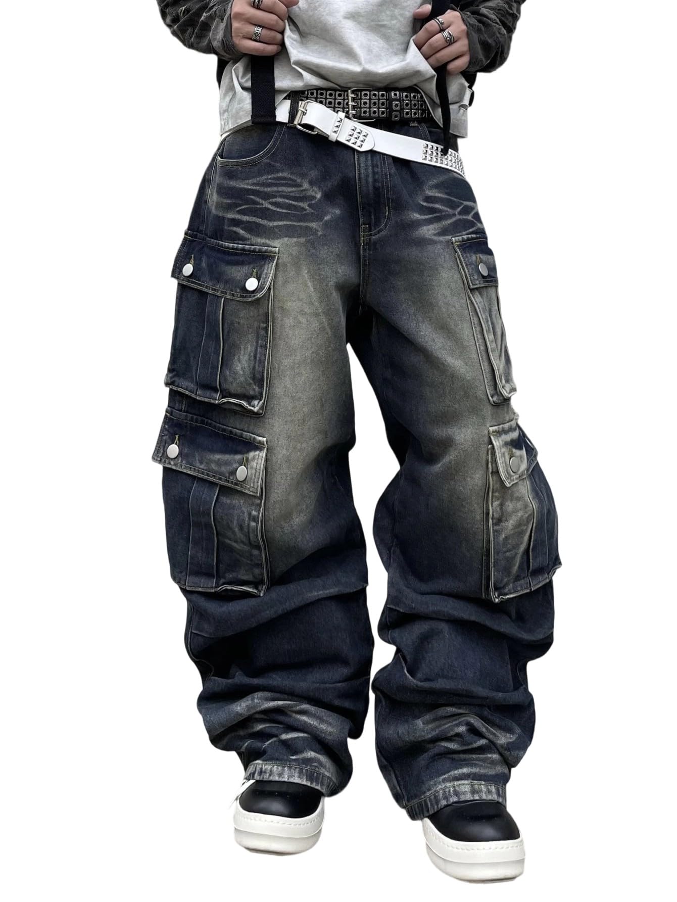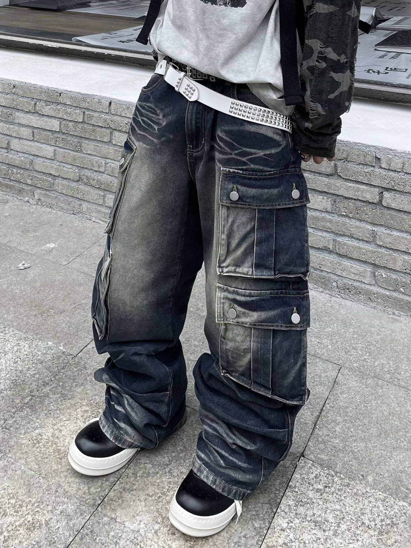 Description The DFGIGT Men's Baggy Cargo Jeans are a must-have for anyone seeking a blend of style, comfort, and functionality. Designed with practicality in mind, these jeans feature multiple flap cargo pockets that provide ample storage for all your essentials, making them perfect for hiking or travel. The unique patchwork and embroidery details elevate the classic cargo style, giving these jeans a trendy, artistic edge that sets them apart from typical denim pants. The baggy wide-leg fit offers a relaxed silhouette, ensuring maximum comfort and freedom of movement whether you're on the go or enjoying a casual day out. Crafted for versatility, these cargo jeans are ideal for various outdoor activities, from hiking trails to urban adventures. Their Y2K-inspired design captures the nostalgic essence of early 2000s fashion while seamlessly integrating with modern streetwear trends. Pair the DFGIGT Men's Baggy Cargo Jeans with a simple tee or a stylish hoodie for a complete look that stands out. Experience the perfect combination of utility and fashion with these relaxed-fit cargo pants, designed for those who appreciate both style and practicality.