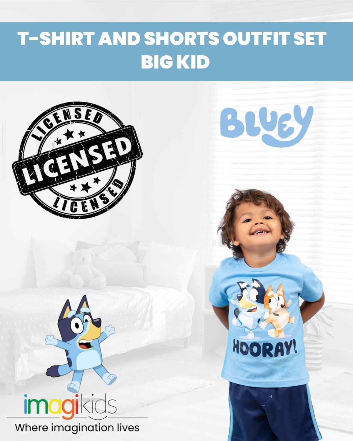 Description Get ready for a fun adventure in this cool Bluey outfit. This stylish short sleeve shirt and mesh shorts set features cute and vibrant Bluey artwork your kid will be excited to wear! Made of a soft and lightweight material that keeps your child comfortable, this fashionable Bluey tee and shorts set is the perfect outfit for all day play.