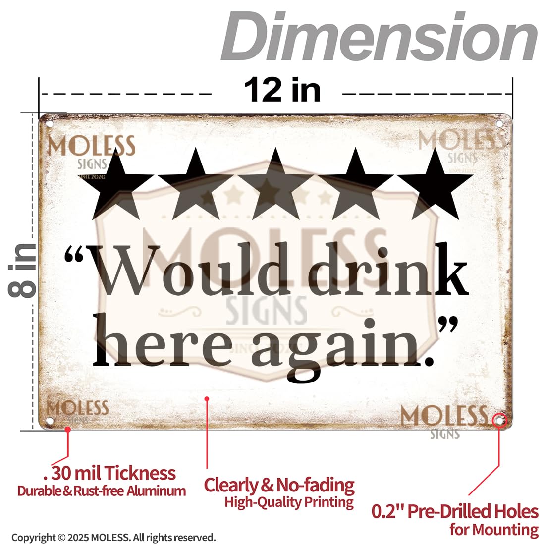 12 x 8 Inches: Compact yet boldโperfect for any bar wall decor! Explore more funny bar signs on MOLESS Signs.