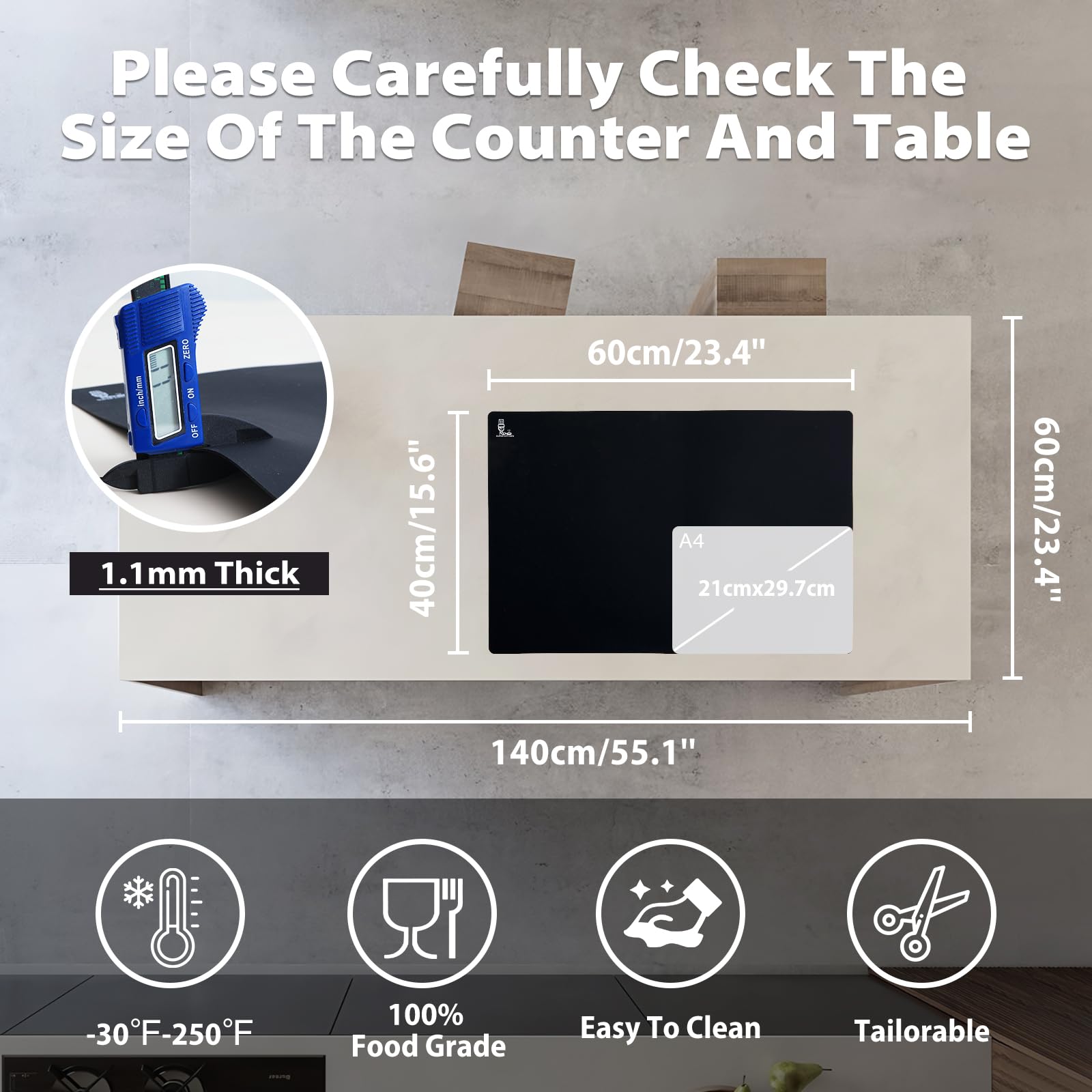 Cuttable: The large silicone baking mat(23.4"x15.6") is suitable for most kitchen countertops. Both sides of the kitchen counter mat have the same texture. You can cut the specific size and shape you want.
