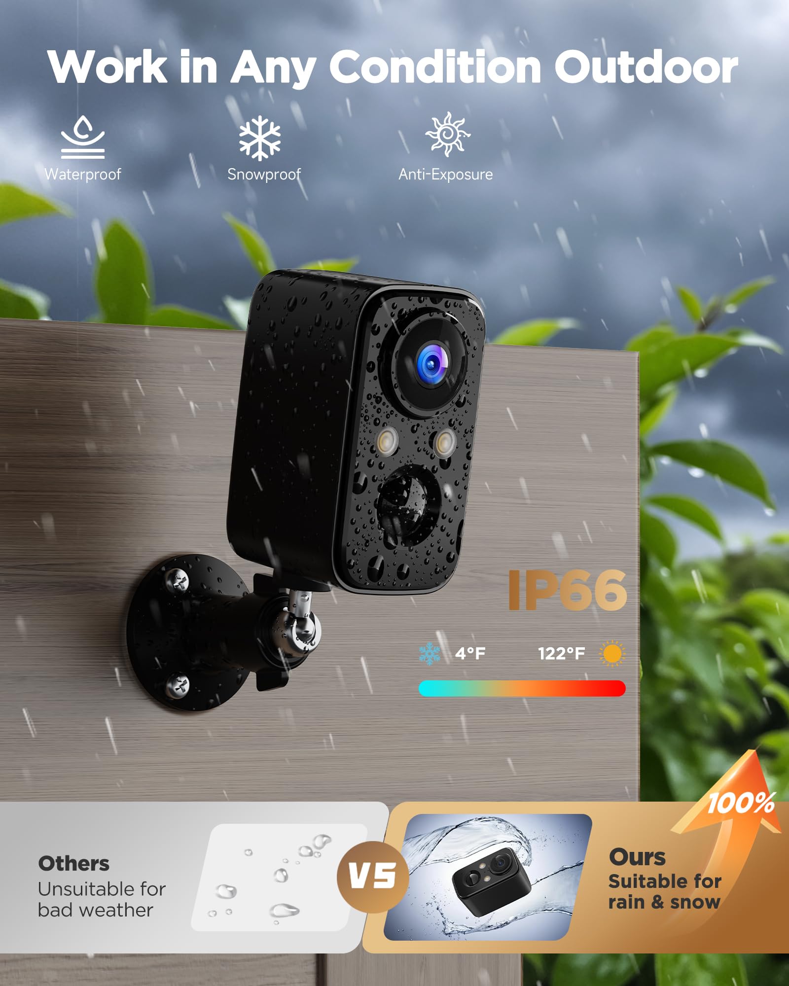 【PIR Motion Sensor & Real-time Alerts 】- Wireless security camera outdoor using the latest PIR sensor that can identify person, pet, vehicle, support set alarm plans. Once outdoor security camera detected the motion, a notification will be sent to your mobile APP and the video or image will be stored in cloud storage. This will be a great security camera system for your family.