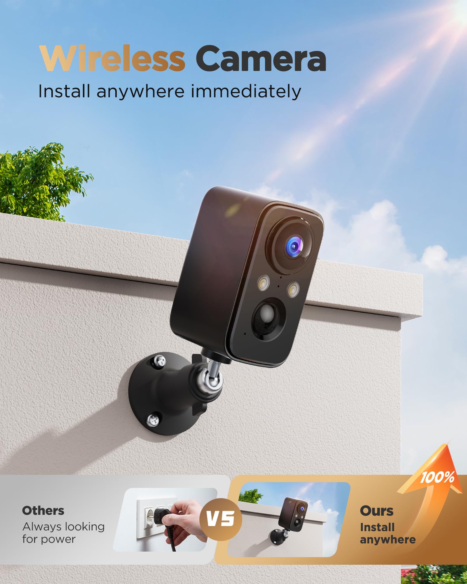 【2K Resolution & Stay Away from Mosaic】This security cameras wireless outdoor Equipped with latest 2K resolution technology further enhances the camera's visual effect. Compared to a full screen mosaic, you are more likely to see clear videos from this outdoor security camera, giving you a different user experience. Whether it's observing small animals or finding invaders, it's easier. Nice security camera system.