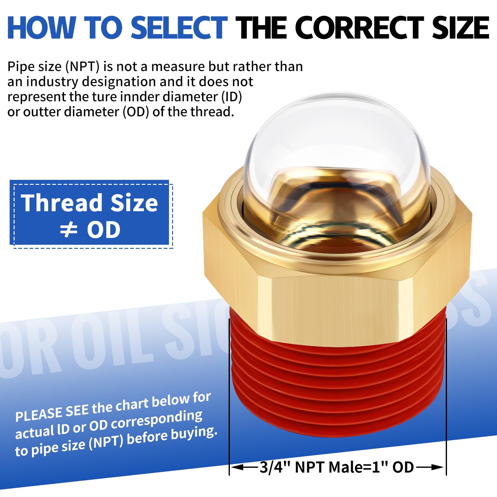 【Good Transparent View】 The 3/4'' NPT brass dome oil sight glass with tempered glass which the thickness is 3mm , can provide you with a good transparent sight view and has a good has a good ability to withstand pressure.