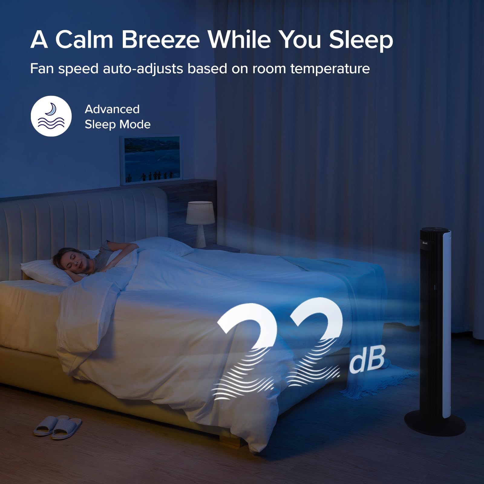 ๐๐๐๐จ๐ฅ๐๐ง-๐๐ช๐๐๐ฉ: The fan's quiet yet efficient performance won't disturb your sleep with noise levels as low as 22dB