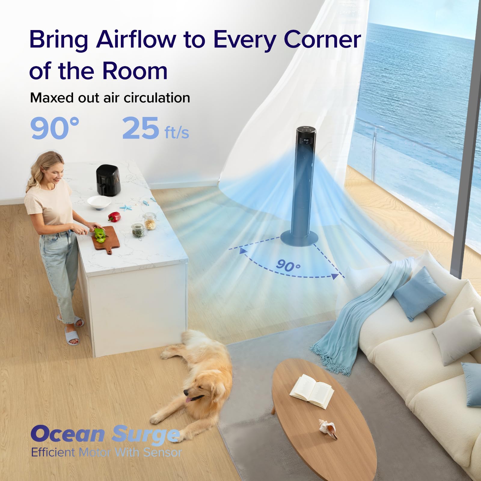 ๐๐ช๐ก๐ก-๐๐ค๐ค๐ข ๐พ๐ค๐ซ๐๐ง๐๐๐: 90ยฐ horizontal oscillation reaches every corner of your room to ensure all-around comfort