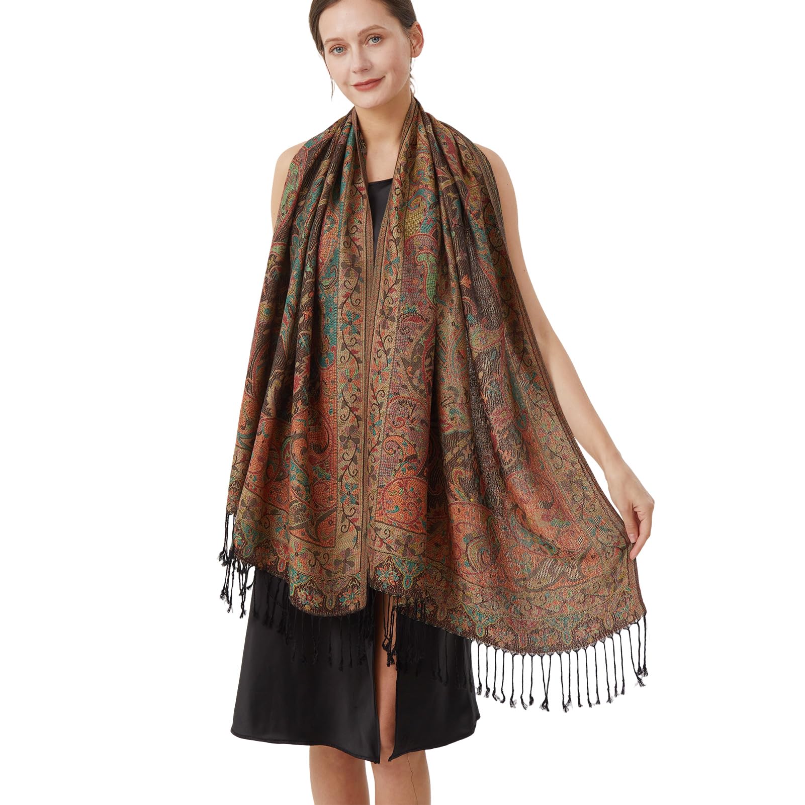 ETHNIC JACQUARD PAISLEY DESIGN: --The pashmina shawl is Elegant and retro paisley pattern design, full of artistic sense, easy to match with a variety of styles and enhance the overall fashion