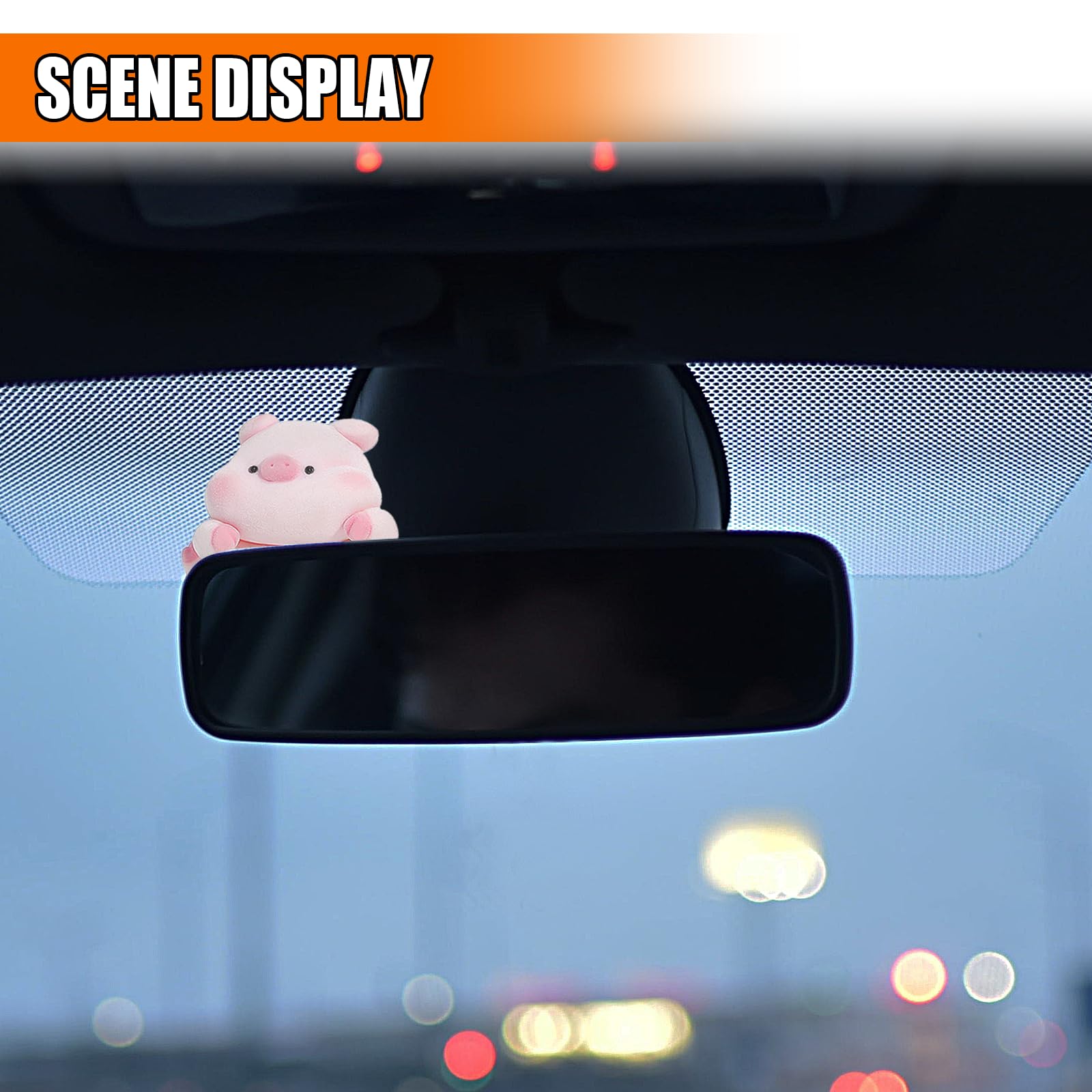 GAOLAOSY Cute Pig Car Rearview Mirror Decoration, Cartoon Funny Mini Car Dashboard Ornaments, Universal Aesthetic Automotive Interior Accessories for Women Men Present (Pig)