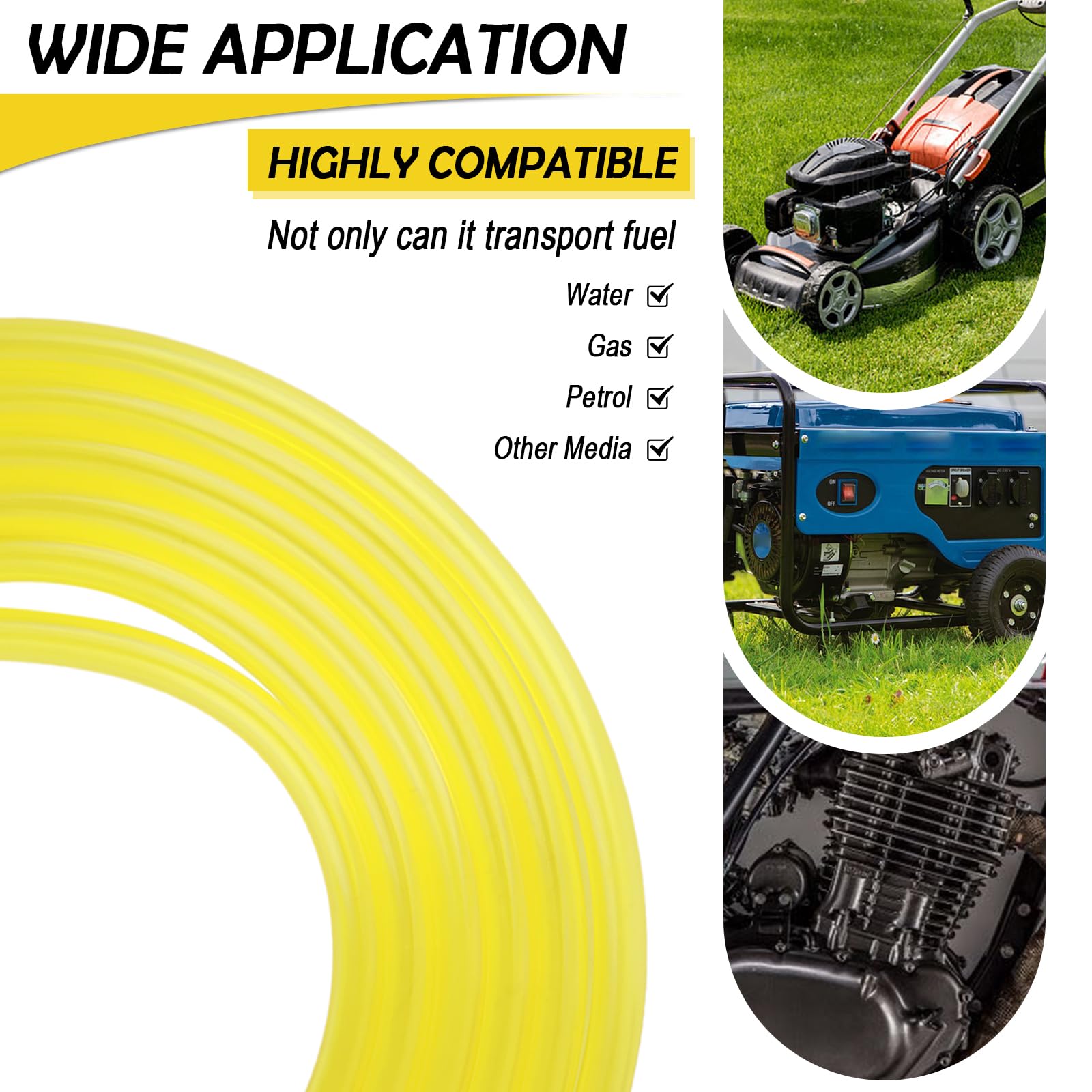 WIDE APPLICATION: This 6mm fuel line is highly compatible, it can not only transport fuel, but also water, gas, petrol and other media can be easily dealt with. It can also be used for small engines, lawnmowers, generators and other equipment