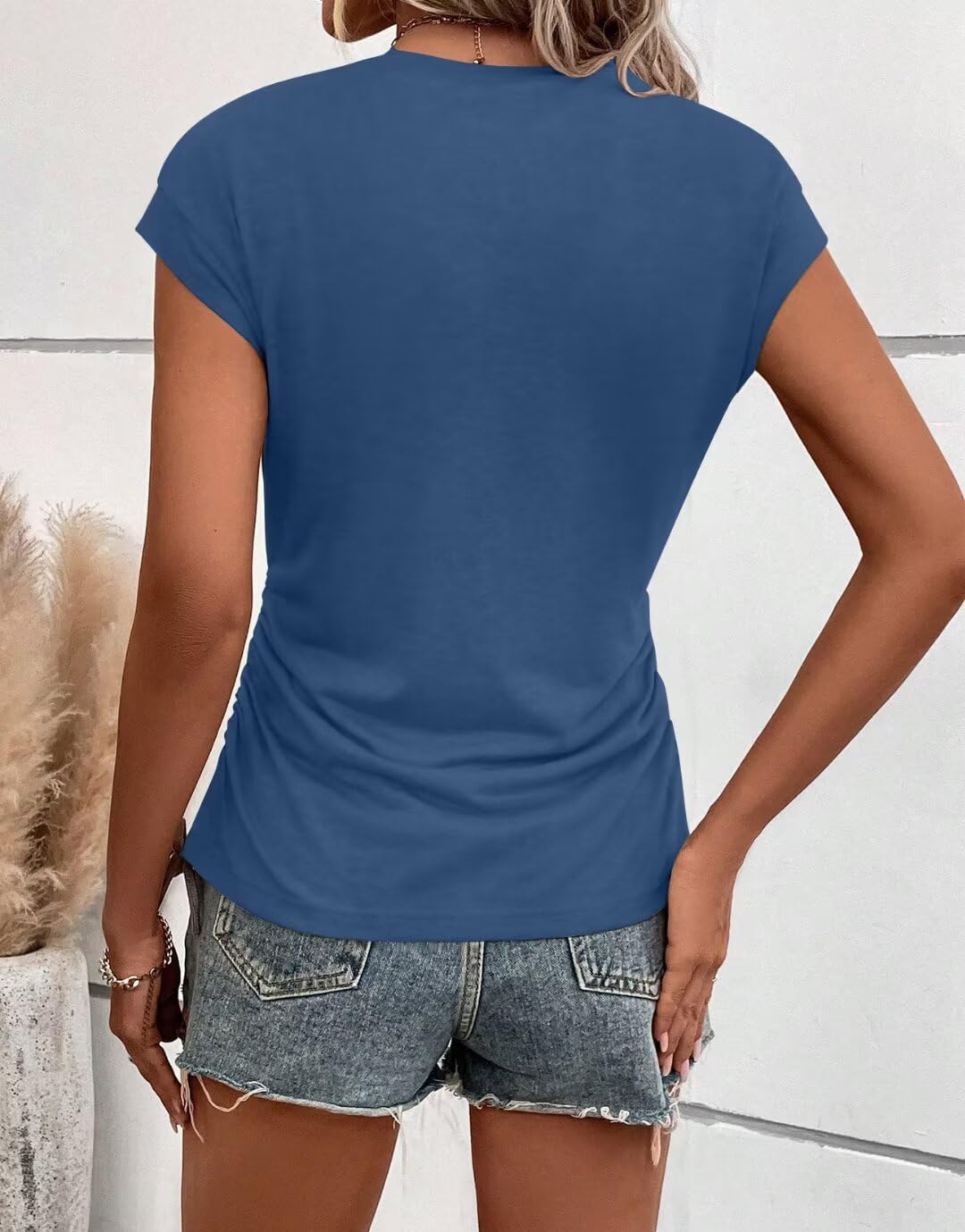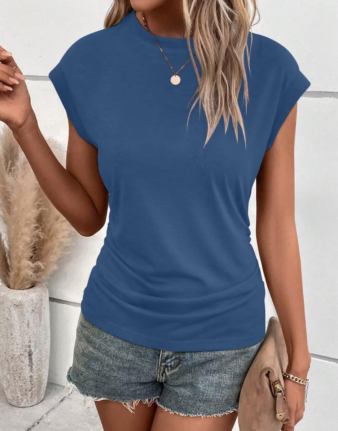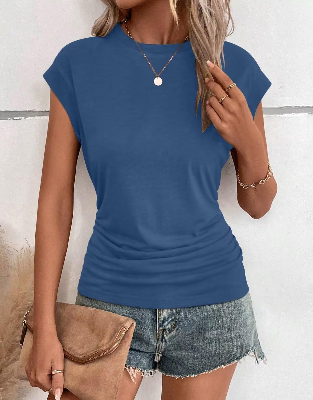 Features:Round neck,cap short sleeve,casual tops trendy,solid color T shirts,oversized fashion tshirts shirts for woman,plus size tee clothing.The unique pleated design makes it a must-have for your summer wardrobe