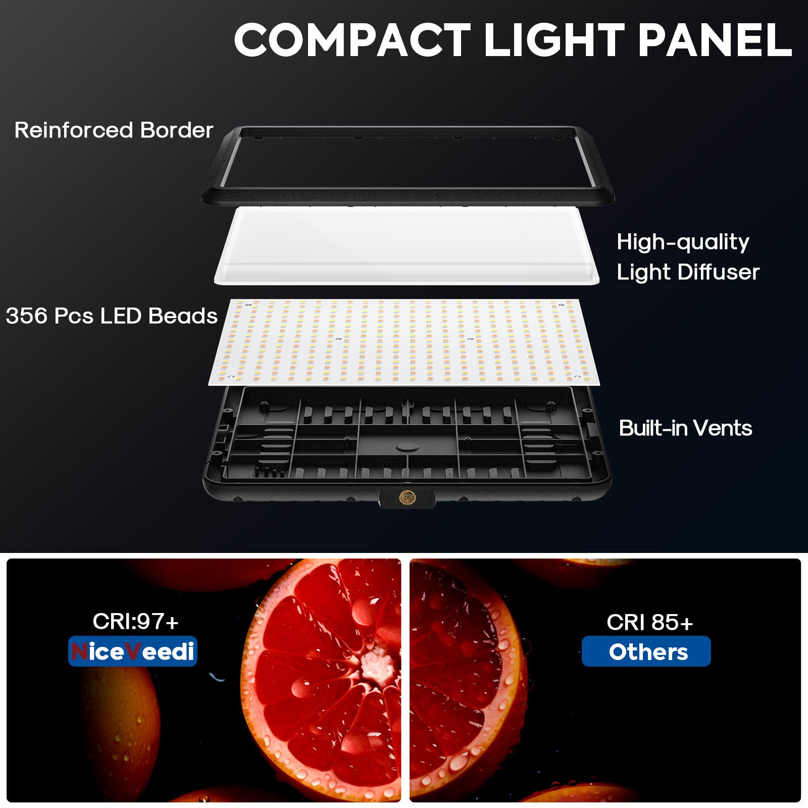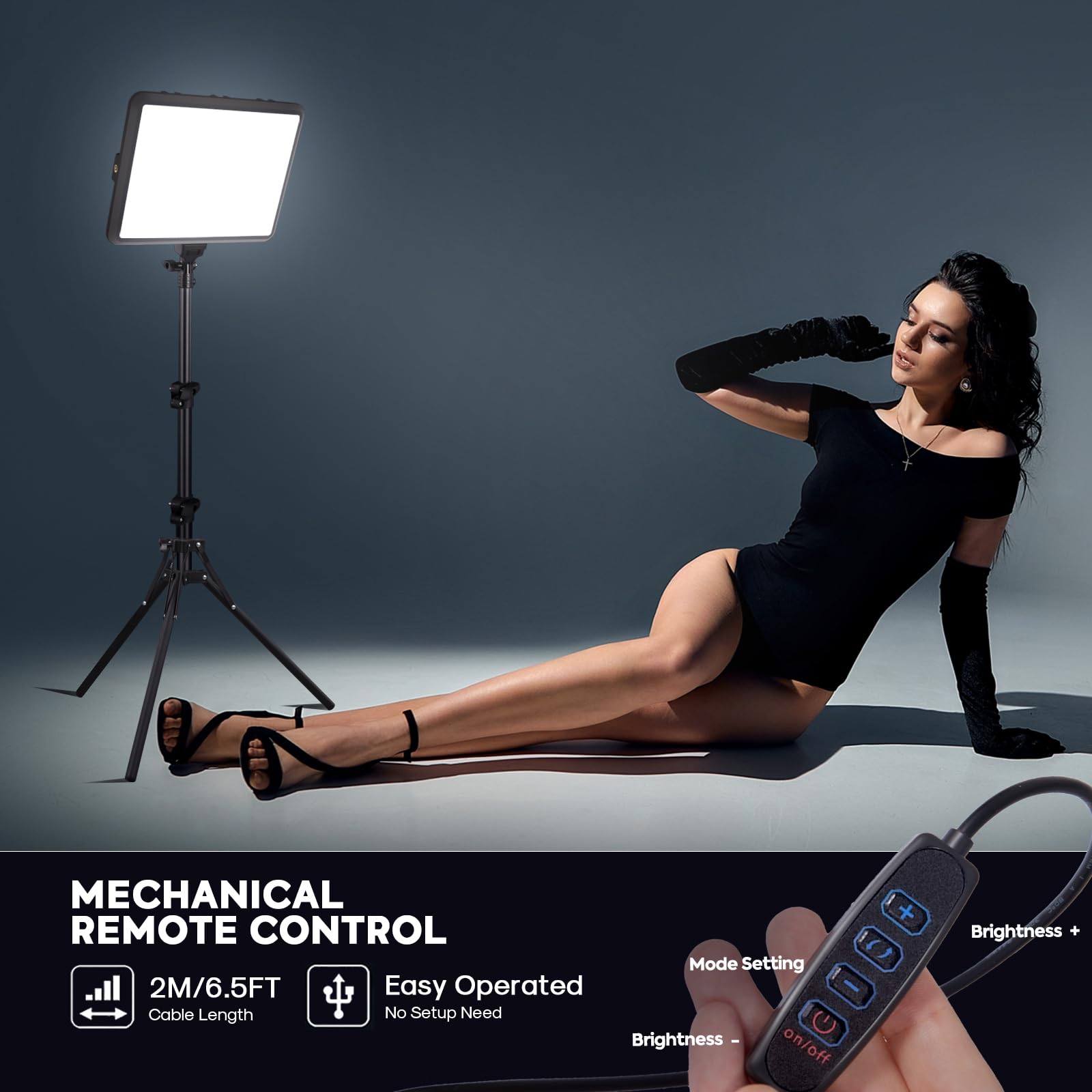 【MULTIPLE COLOR TEMPERATURE & ADJUSTABLE BRIGHTNESS】Provide 3 Color temperatures (2900K, 4800K & 7000K)to create various lighting atmosphere; This Upgraded Studio Light which is equipped with 352 Led beads to make the light more ample and avoid unnecessary shadows. Features a high CRI of 97+ for precise color rendering. Adjust the brightness in a range of 10 to 100% with button up and down on remote to meet different photography circumstances, offering extra lighting for your works.